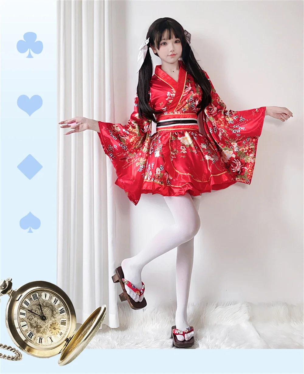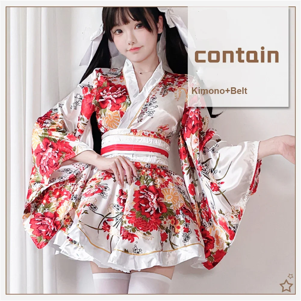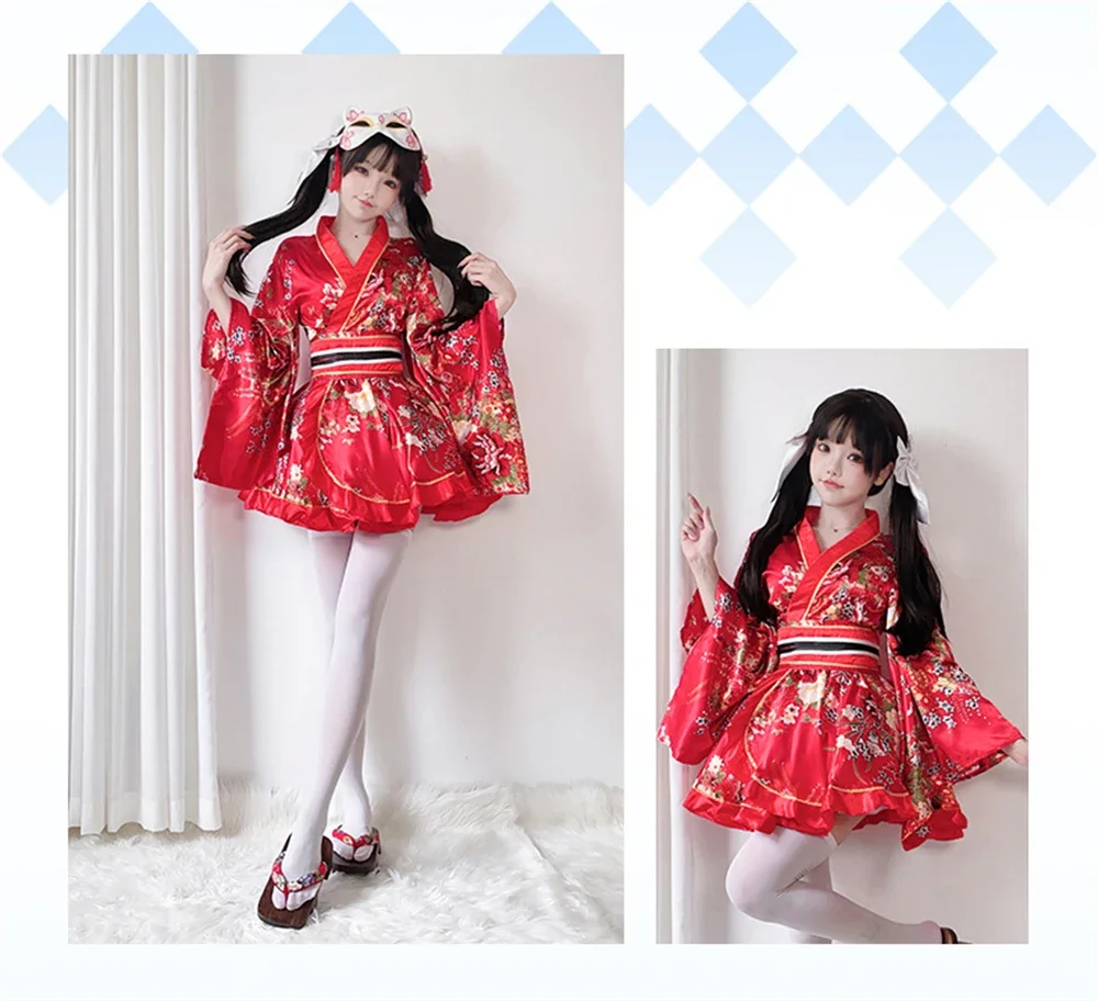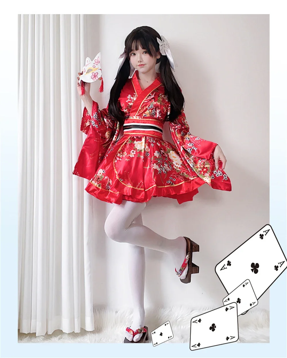 Japanese Modified Kimono Dress For Women Bathrobe Summer Cosplay Costume Anime Halloween Costumes Sexy Sweet Geisha Kawaii Girl