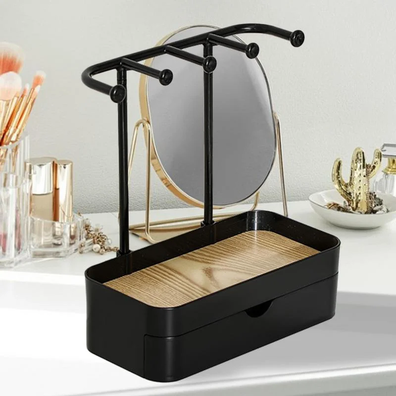 Jewelry Organizer Display Stand Rack With Wooden Tray For Earrings Bracelet Necklaces Rings Storage Hanging Organizer Holder