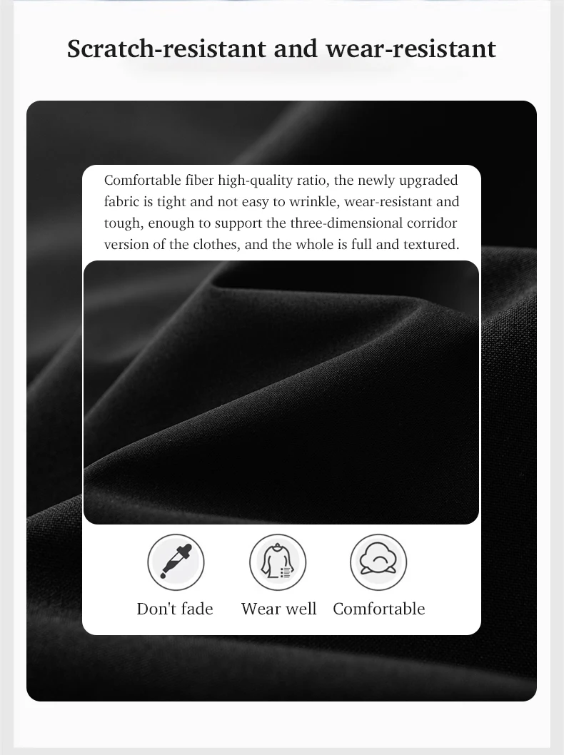 100% polyester fabric with waterproof, windproof, breathable, scratch-resistant, and abrasion-resistant properties.