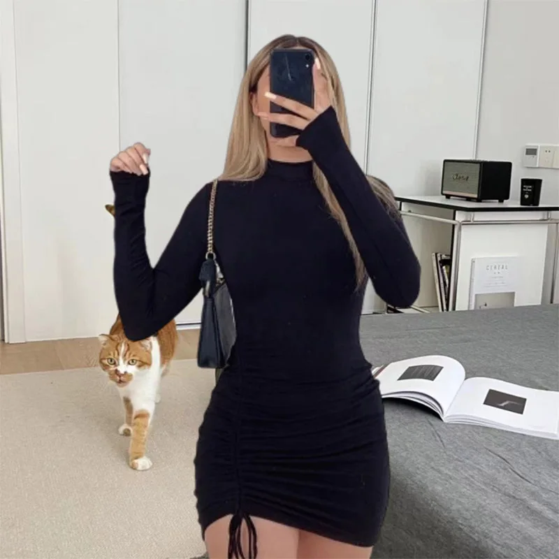 Be the first to review “Julissa Mo Long Sleeve Ruched Bodycon Dress Women Turtleneck Bandage Mini Dresses Autumn Black Skinny Stretchy Party Vestidos”