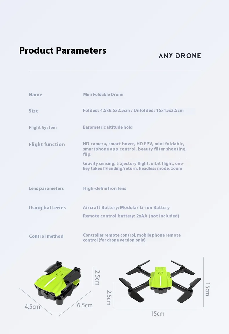 Equipped with a lithium battery, the K10 Mini Drone offers a flight time of 5-10 minutes on a single charge.