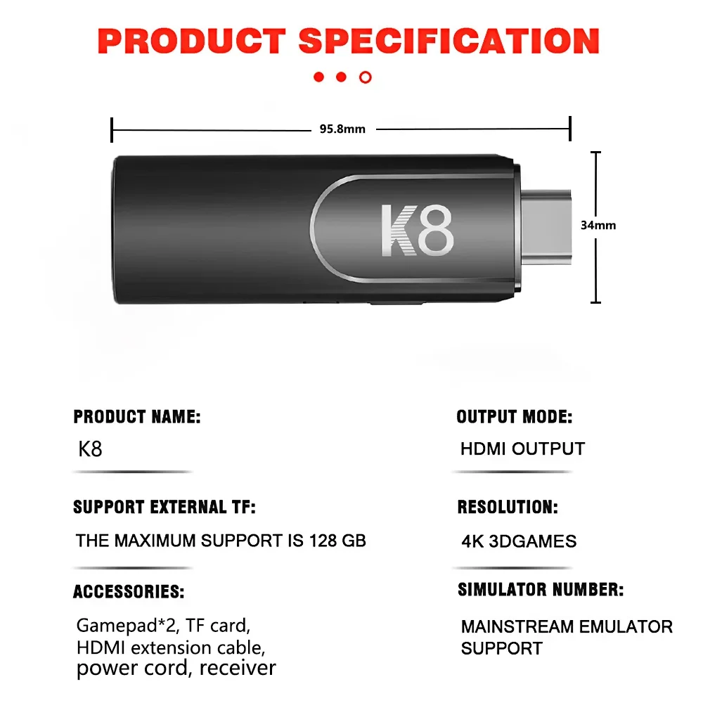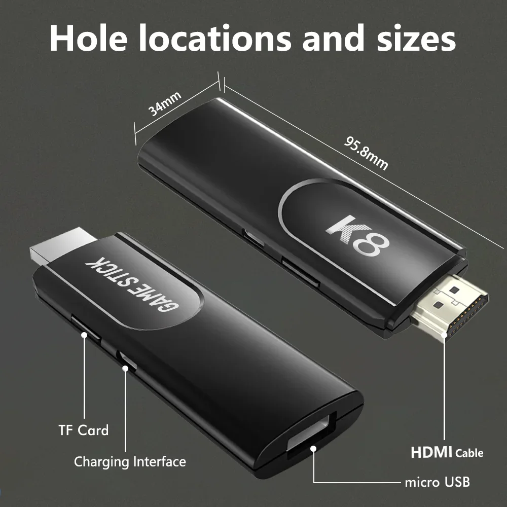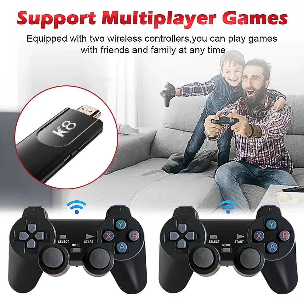 K8 Game Stick 64G 4K HD Video Game Console 40+Simulators Dual Wireless 2.4G Controller Retro Console 10000 Games For Kids Gift