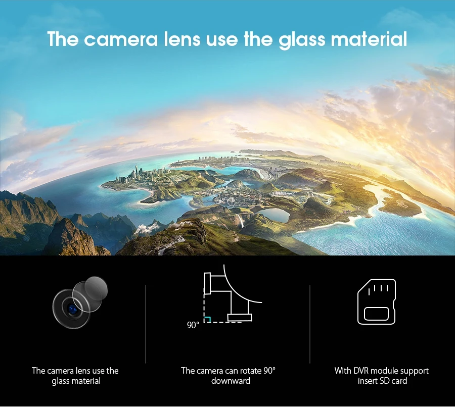 4. There have 3 cameras can be choose -With 720P/1080P/4K wide angle camera give wide high denfinition pictures and video.