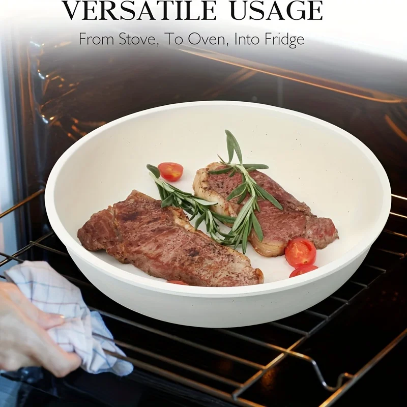 The elegant white color of the cookware set adds a touch of sophistication to any kitchen decor.