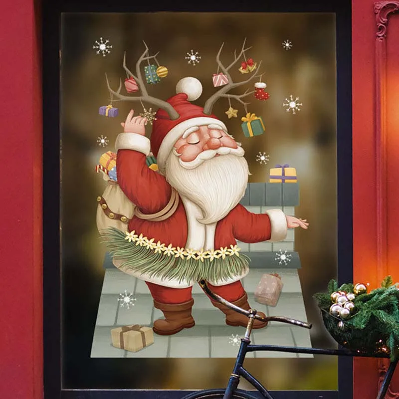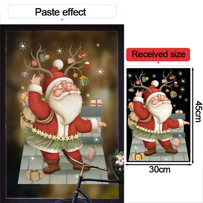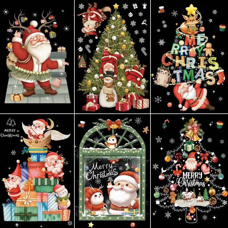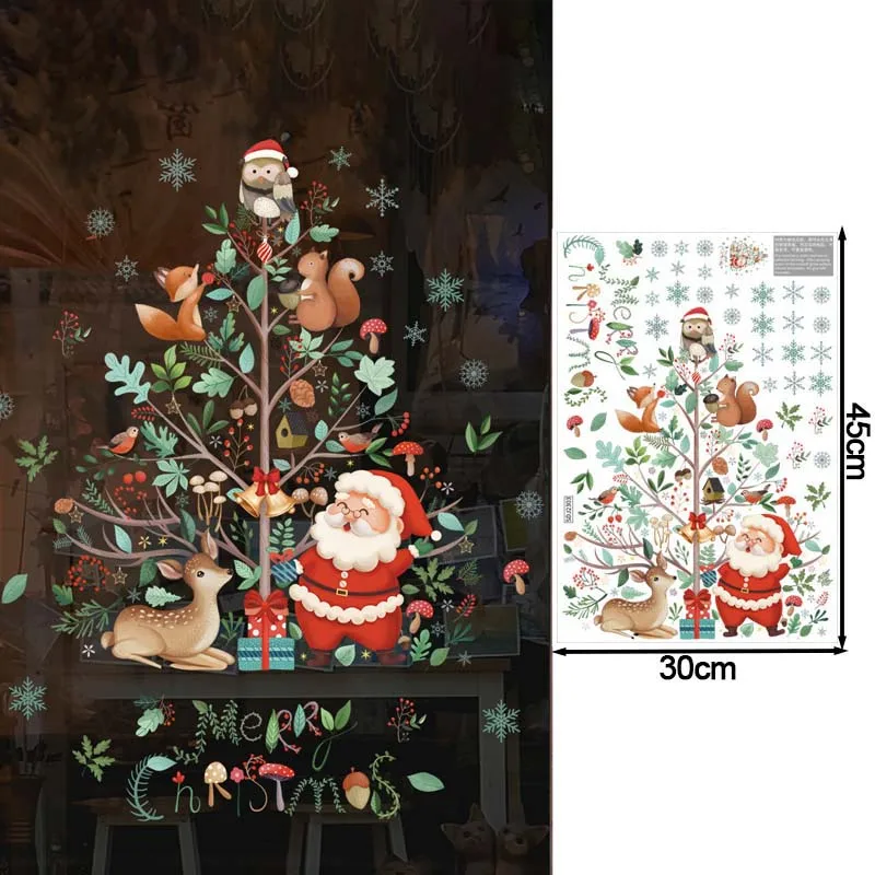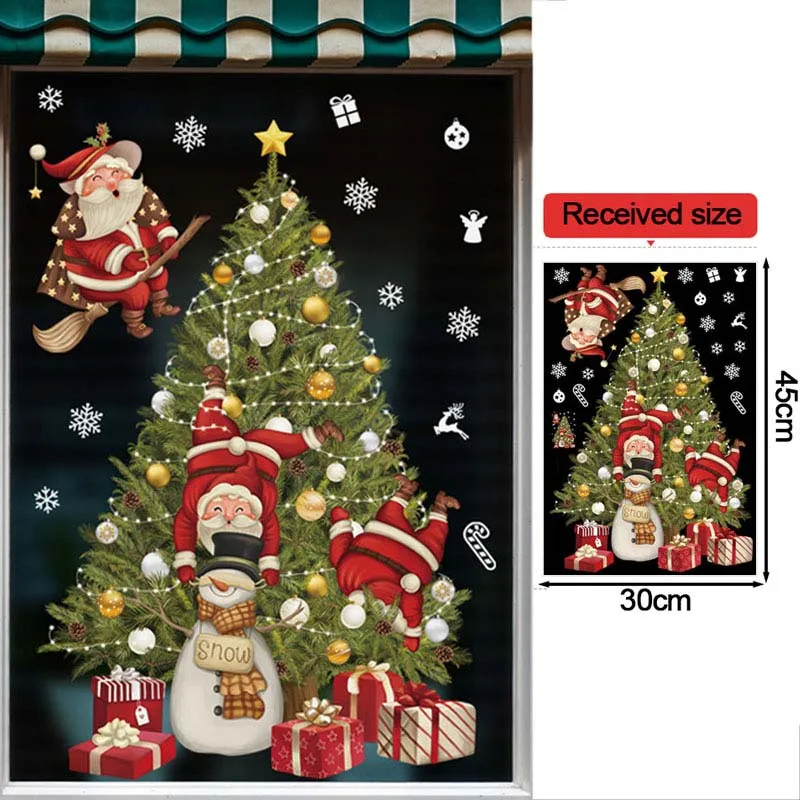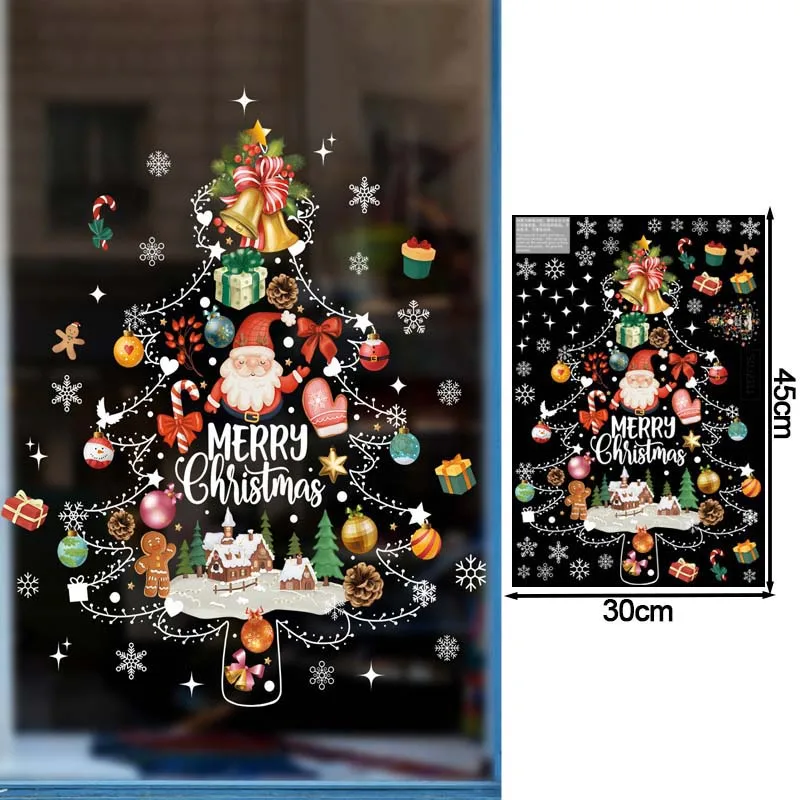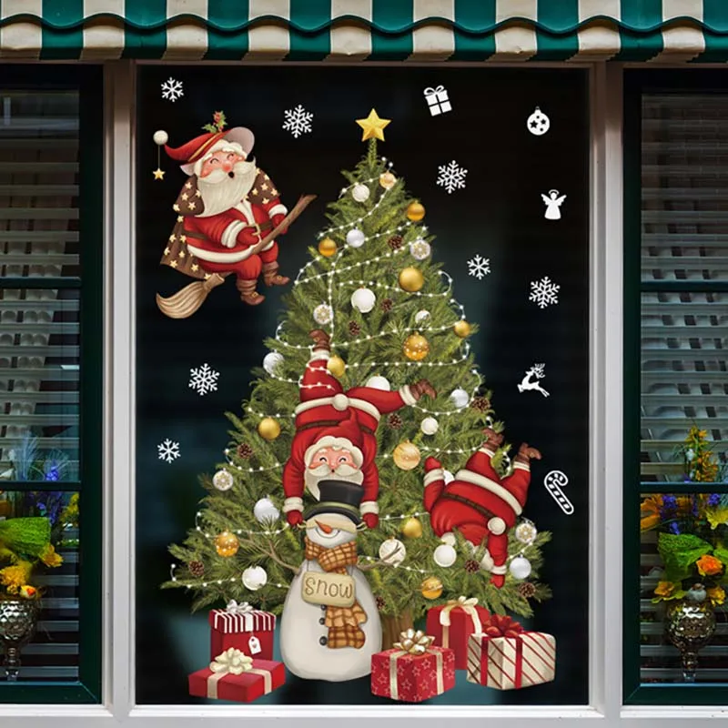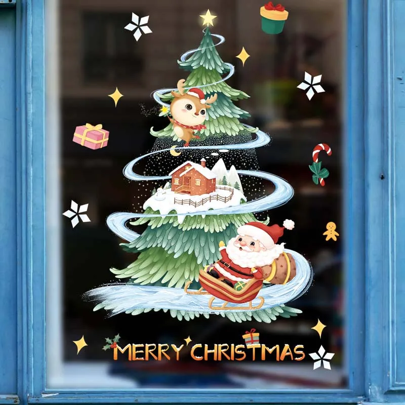 Kerst 2024 Christmas Home Decoration Window Stickers Cartoon Xmas Tree Santa Claus Glass Wall Decor Decals New Year Navidad Gift
