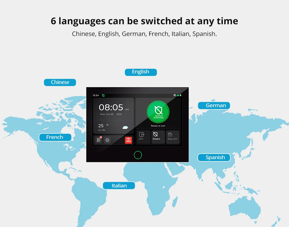 5- Support 6 languages: English, German, French, Italian, Spanish, Chinese.