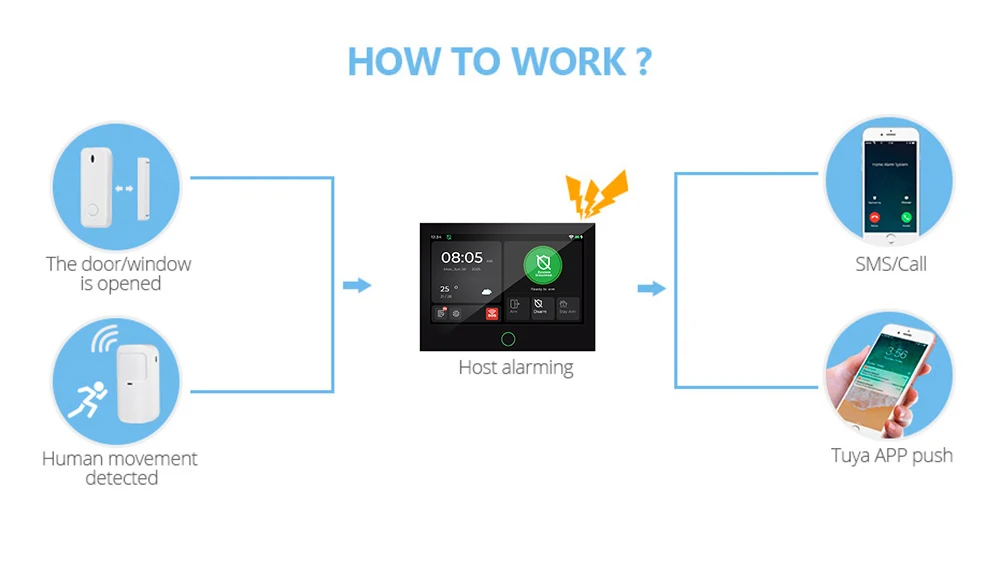 It can be linked to all Tuya solutions for smart home products, such as Tuya cameras, light bulbs, etc., compatible with google Home, Alexa.