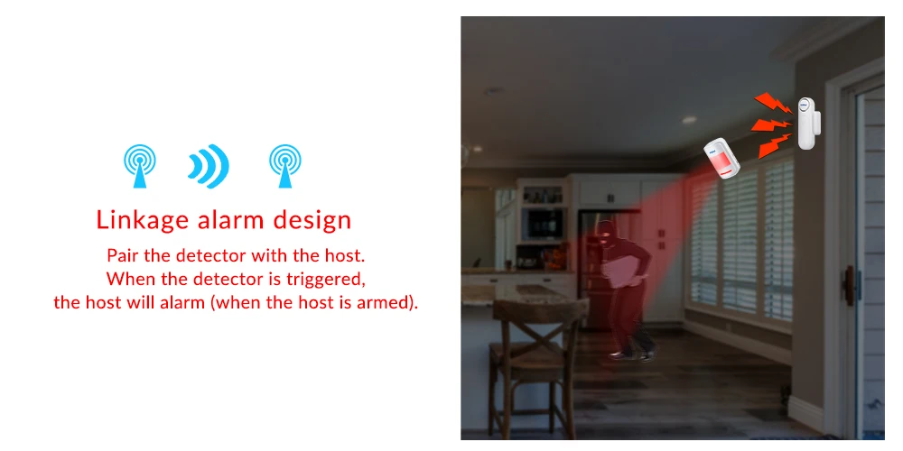 1. It will impressively detect and wake up when the door and window are open, you can also program with remote control and detection function.