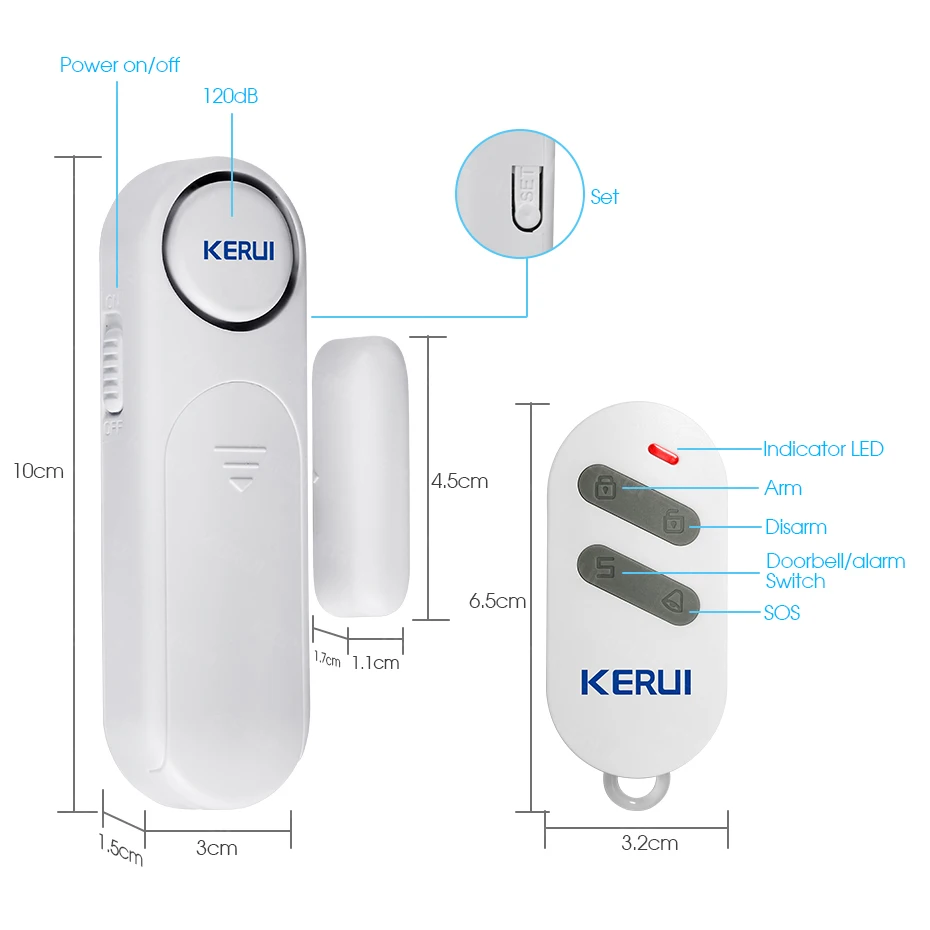 Alarms for doors and windows – This wireless magnetic contact sensor alarm is designed for home, office. Its compact size is ideal for installation on doors and windows, notifies you when doors or windows open.
