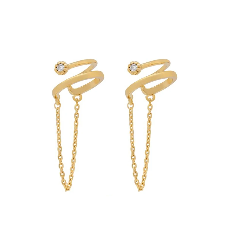 KEYOUNUO Gold Filled Silver Color Zircon Chain EarCuffs For Women Fake Piercing Women’s Clip Earrings Fashion Jewelry Wholesale