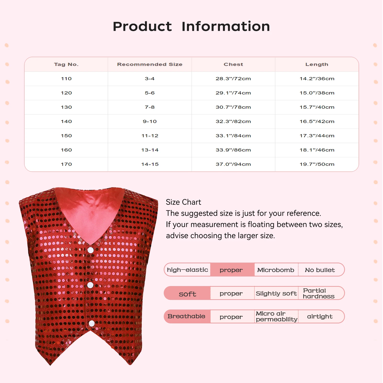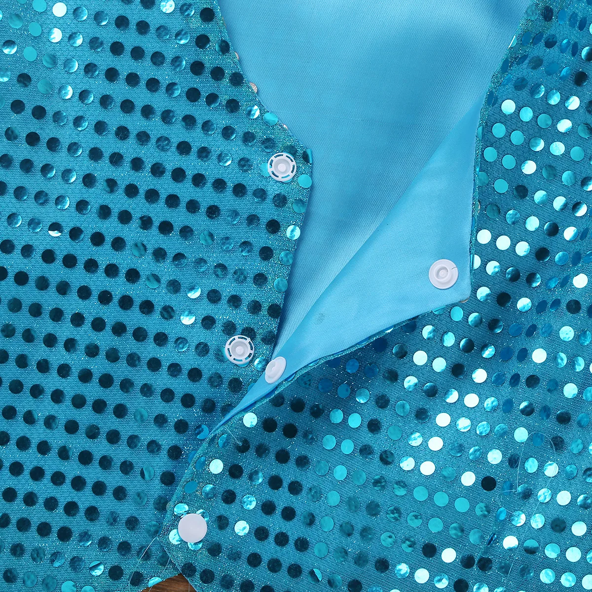 Kids Boys Girls Latin Jazz Hip Hop Dance Vest Waistcoat Shiny Sequins Disco Party Fancy Dress Up Choir Performance Costume 3-15Y
