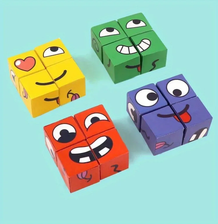 Kids Face Change Cube Game Montessori Expression Puzzle Building Blocks Toys Early Learning Educational Match Toy for Children photo review
