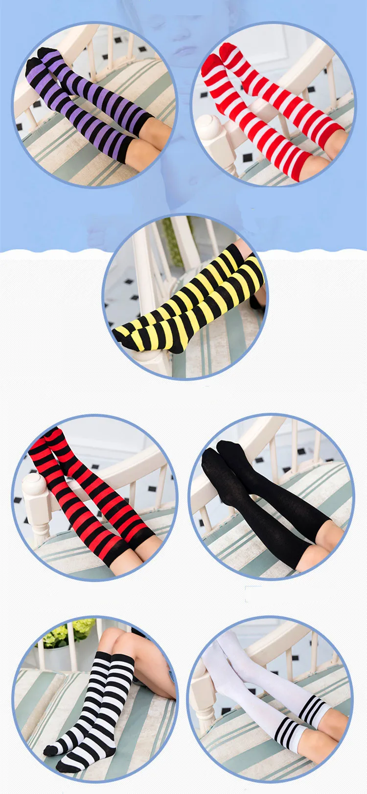 - Children Socks Cotton: Girls Knee Socks Stripes