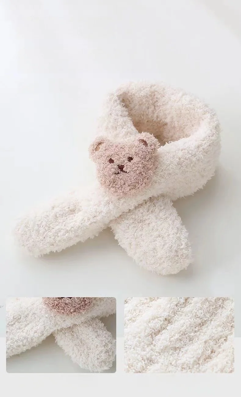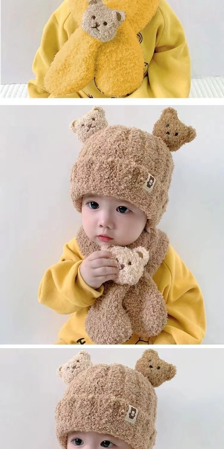 – **Cute Bear Design**: Features cartoon bear elements on the hat and scarf, plus earflap details that protect kids’ ears from cold wind, combining cuteness and functionality.