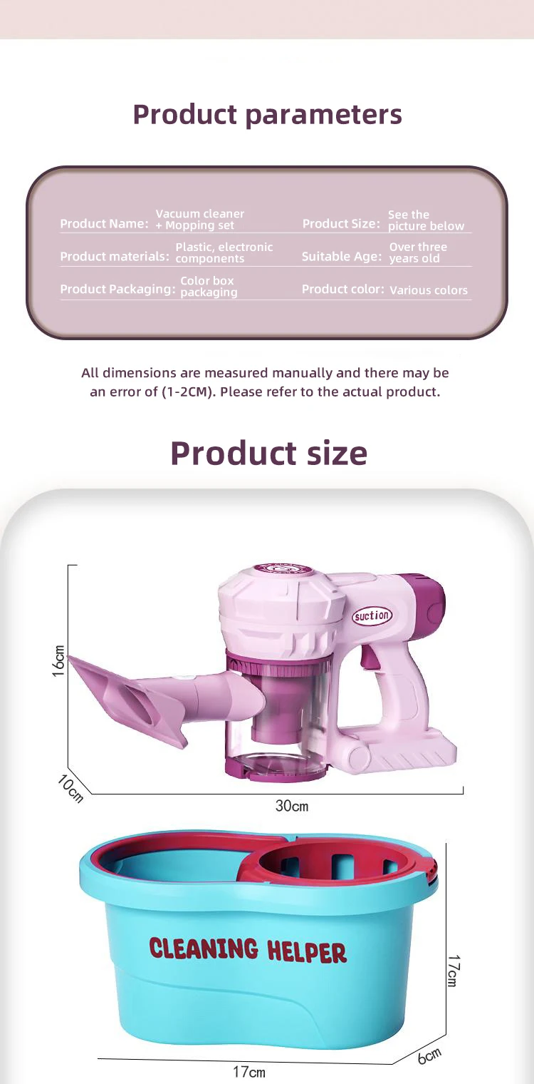 Kids Simulation Electric Vacuum Cleaner Cleaning Set for Toddlers Role Play Housekeeping Educational Toys Girl Boy Gifts