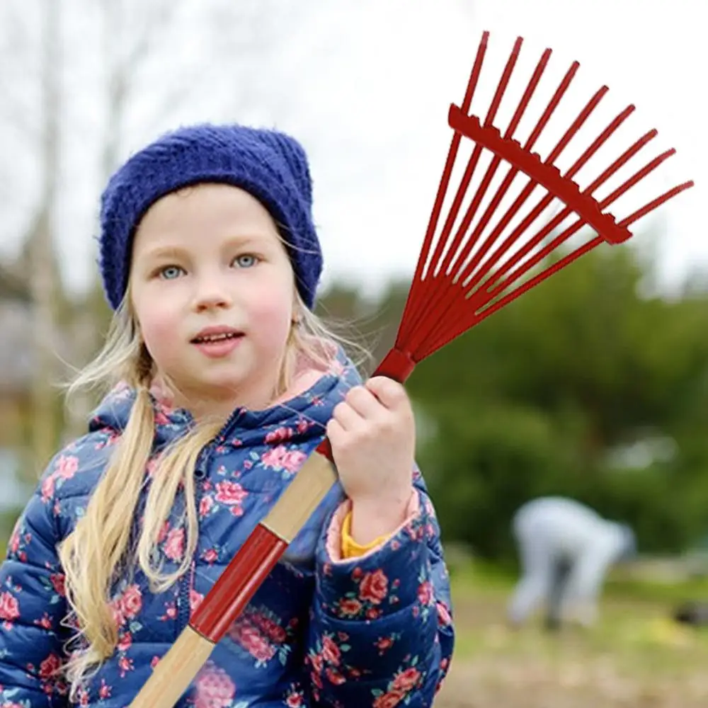 Kids Small Rake Garden Rake And Gloves Kit Kids Lawn Rakes With Detachable Wooden Handle For Outdoor Exploration Gardening Work