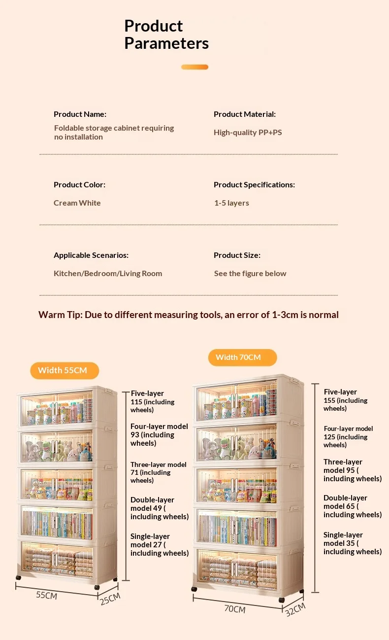 Kids Wardrobe Closet Storage Cabinet Multi Layer Plastic Foldable Drawer Organizer Baby Clothes Nursery Toy Storage White