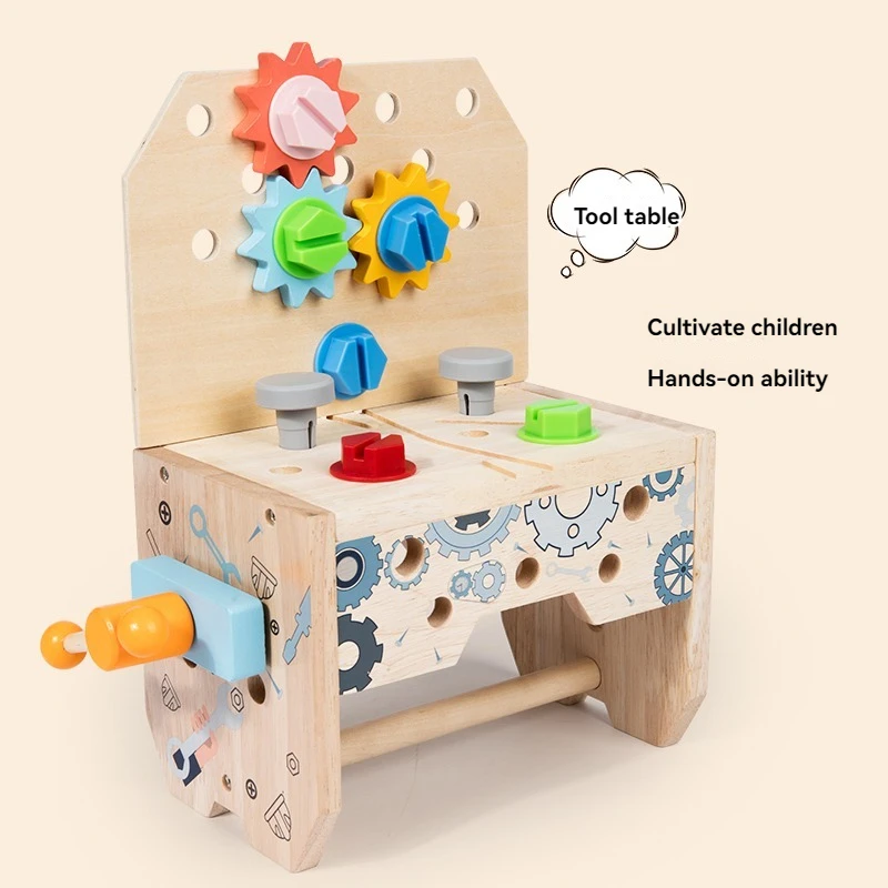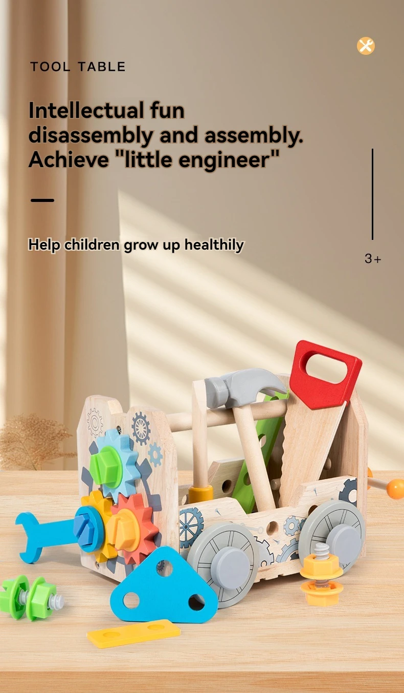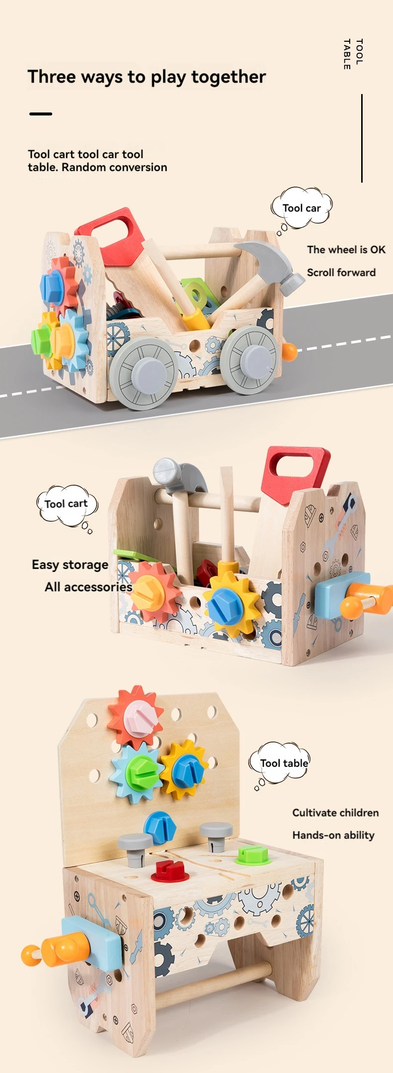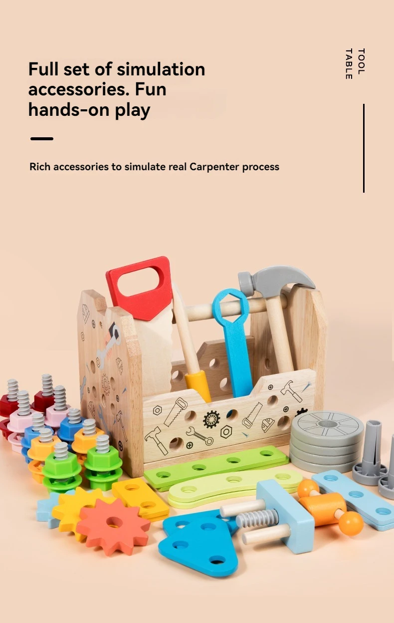 Kids Wooden Tool Box Toy Pretend Game Puzzle Disassembly Set Simulation Multifunctional Repair Carpenter Tool Boy Gift