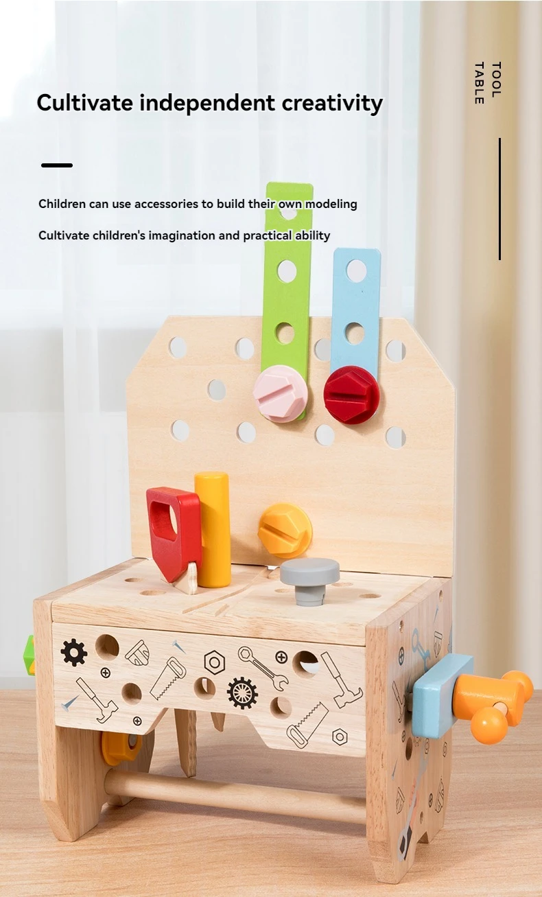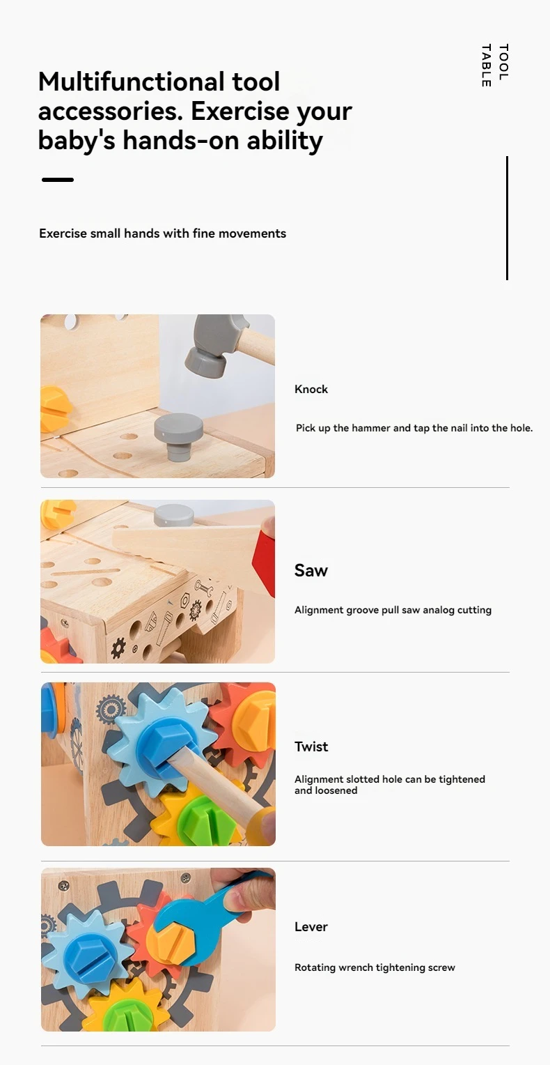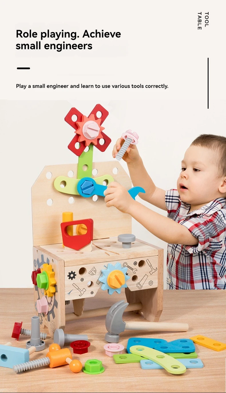 Kids Wooden Tool Box Toy Pretend Game Puzzle Disassembly Set Simulation Multifunctional Repair Carpenter Tool Boy Gift