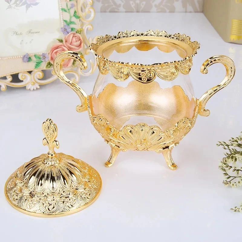 Kitchen Supplies Seasoning Jar Glass Alloy Coffee Sugar Bowl with Spoon Spice Box Salt and Pepper Set Seasoning Organizer