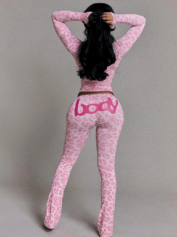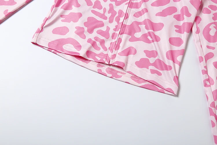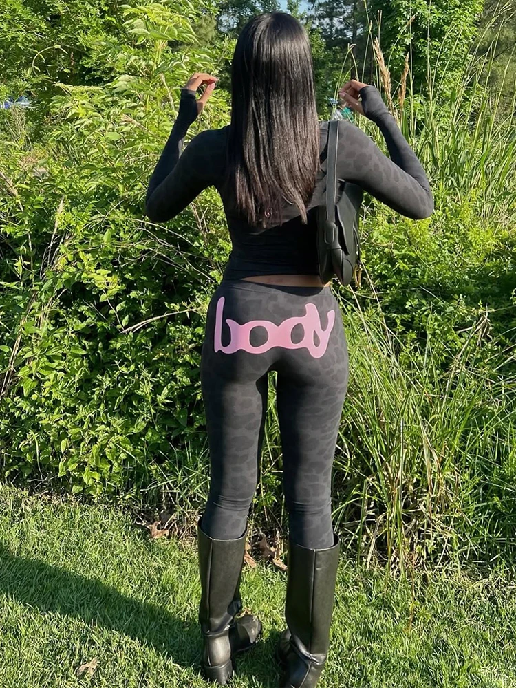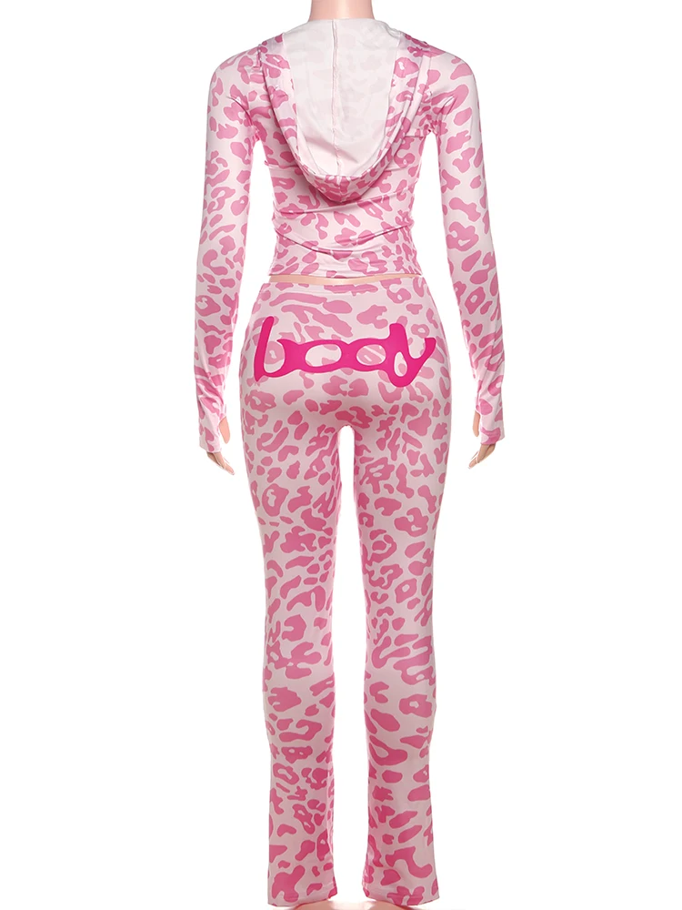 kliou Casual Panelled Leopard Women Pants Sets Hipster Letter Printed Zip-up Tops+Skinny Elastic Trousers Female Street 2 Piece