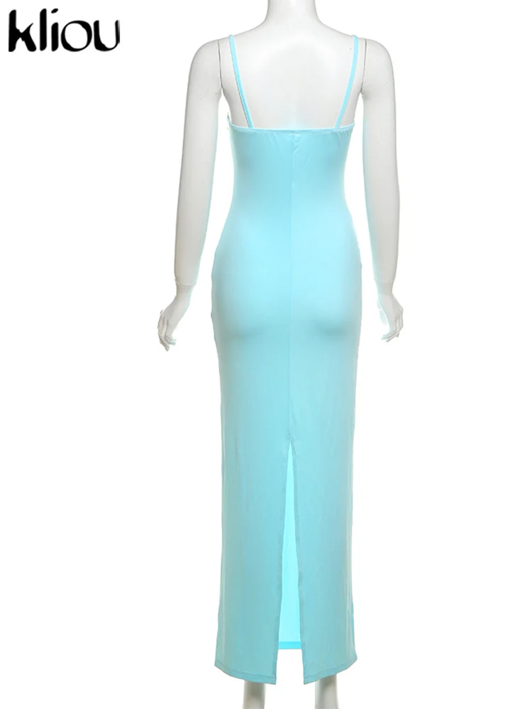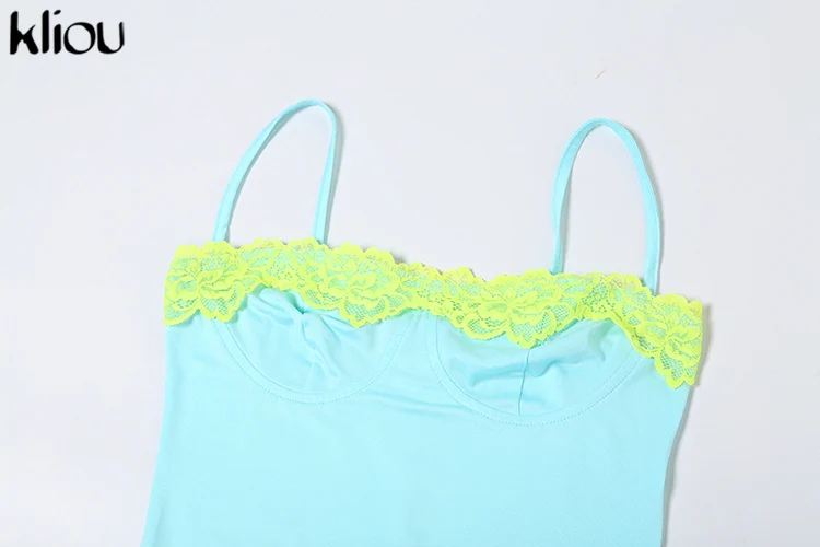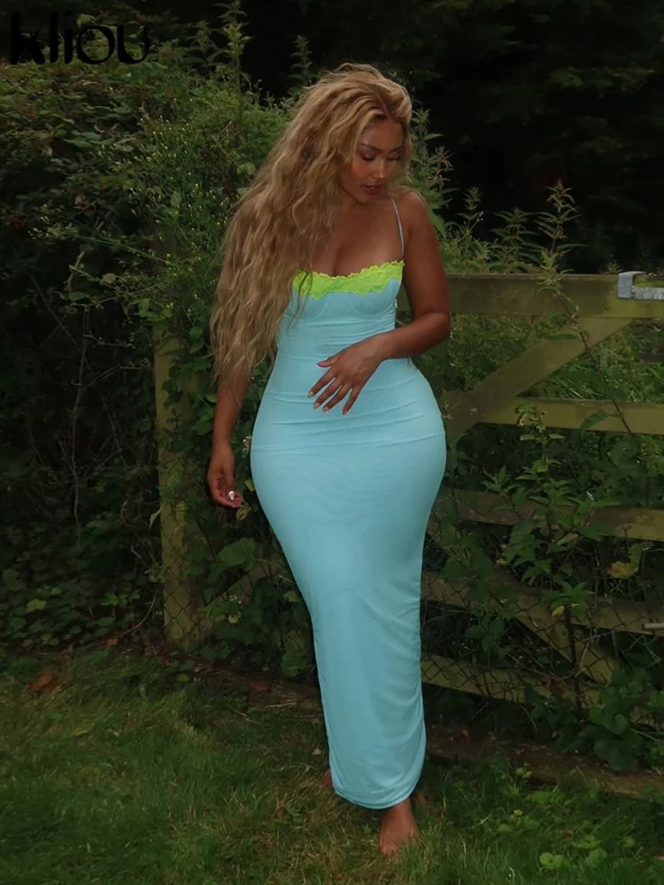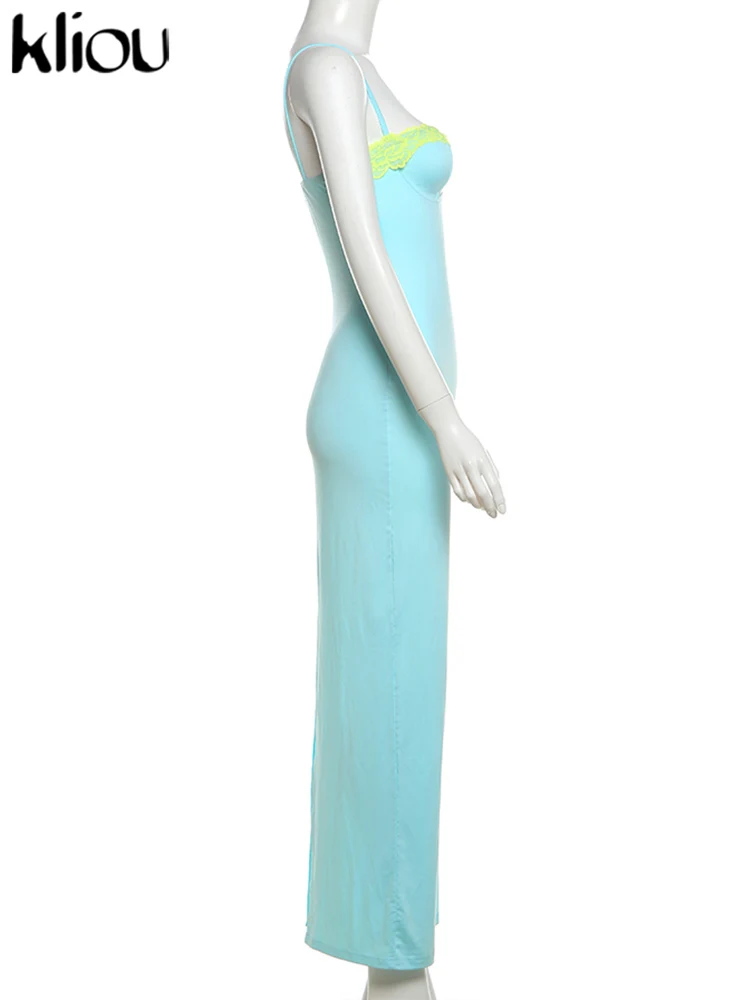 kliou Lace Patchwork Fashion Dress Women Elegant Suspendency Backless Sheath Concise Vestidos Mujer Vacation High Street Wear