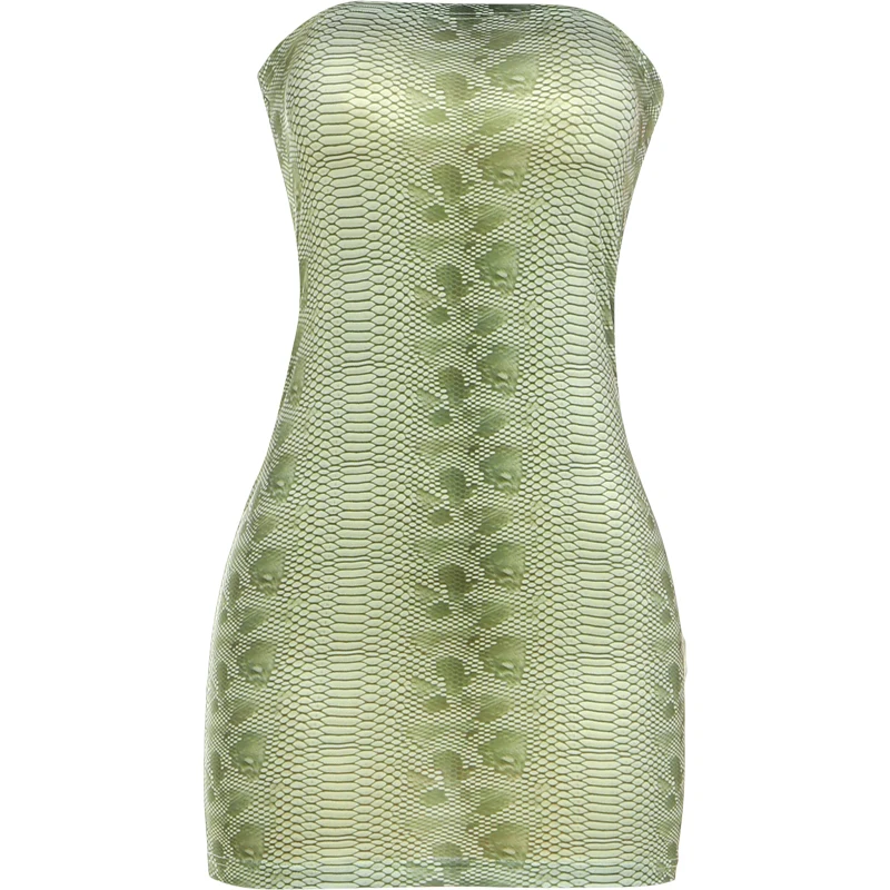 Kliou Serpentine Print Mini Dress Woman Sexy Wrap Chest Backless Skinny Peach Hip Hot Girls Midnight Club Party Coquette Bodycon