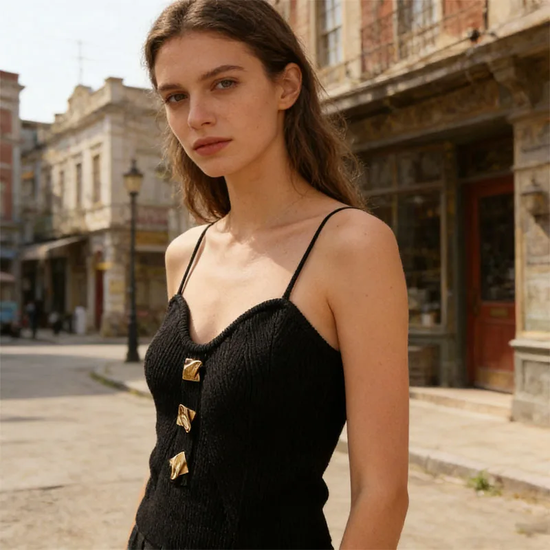 summer tops, going out tops, elegant tops, date night tops, metal buckle, sweetheart neck, ribbed design, open back, spaghetti strap, sleeveless, solid color, slim fit