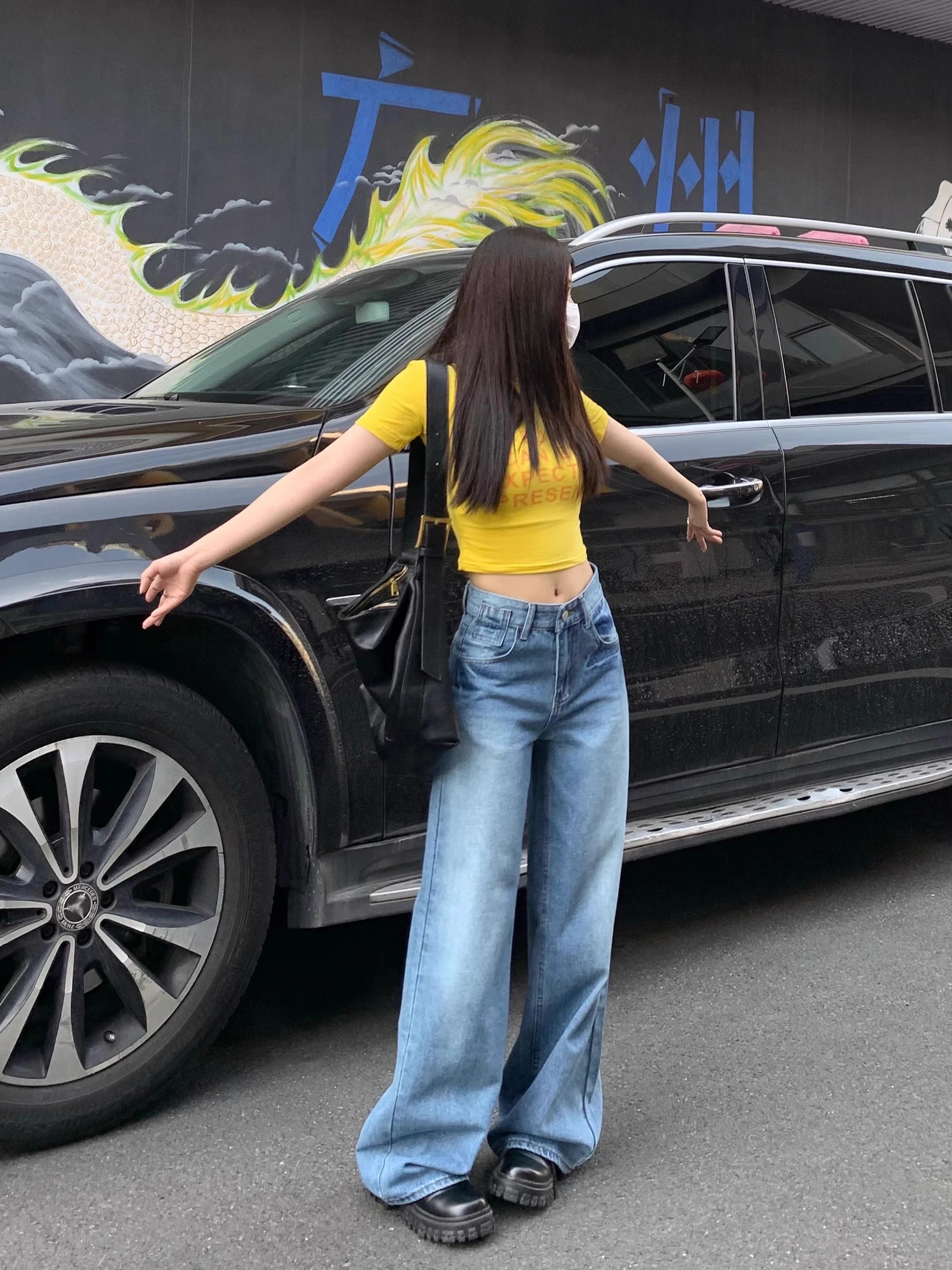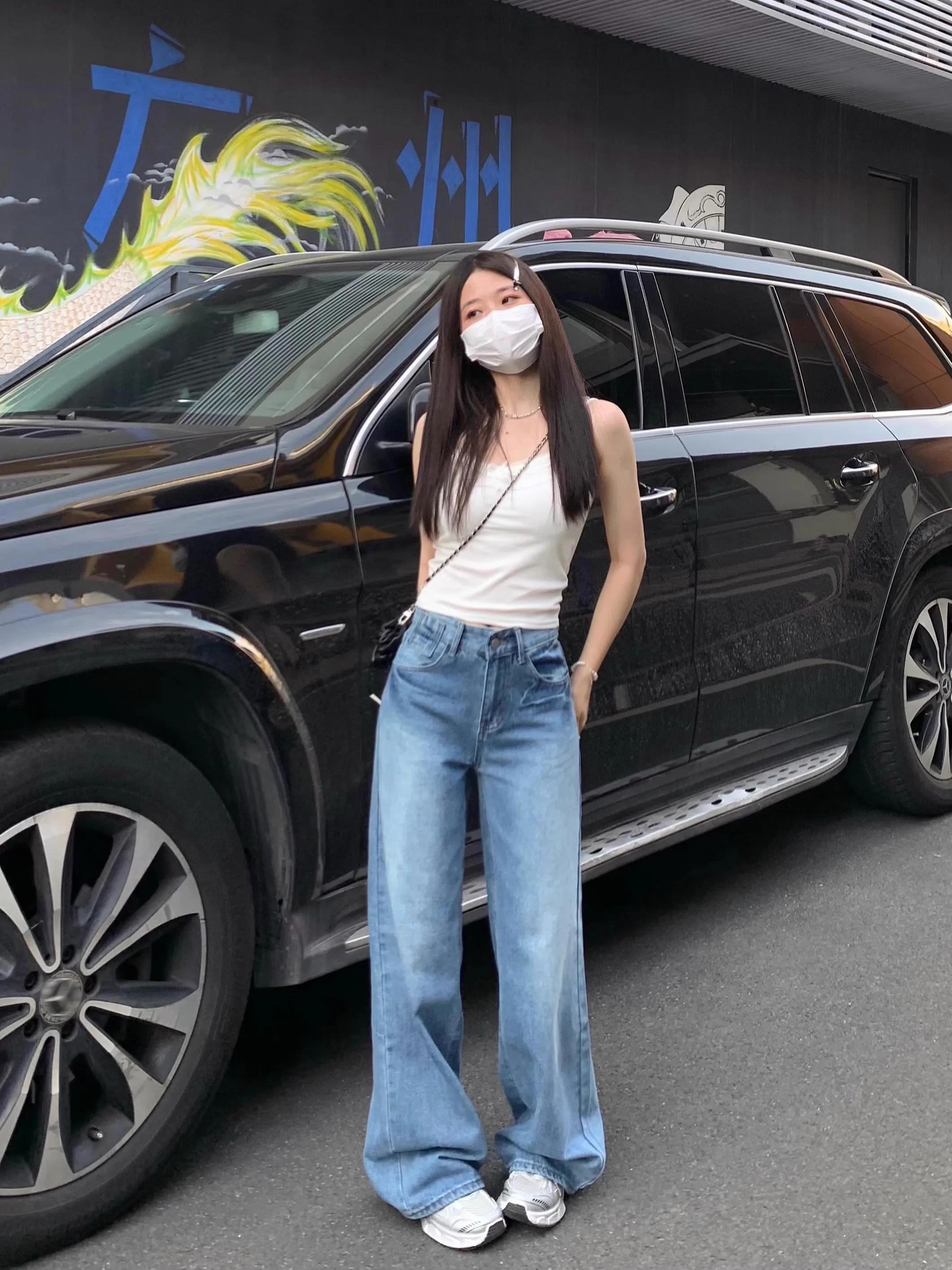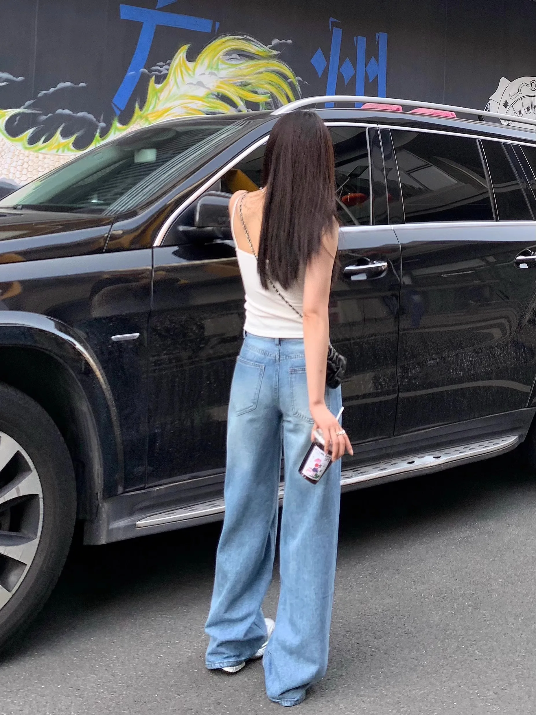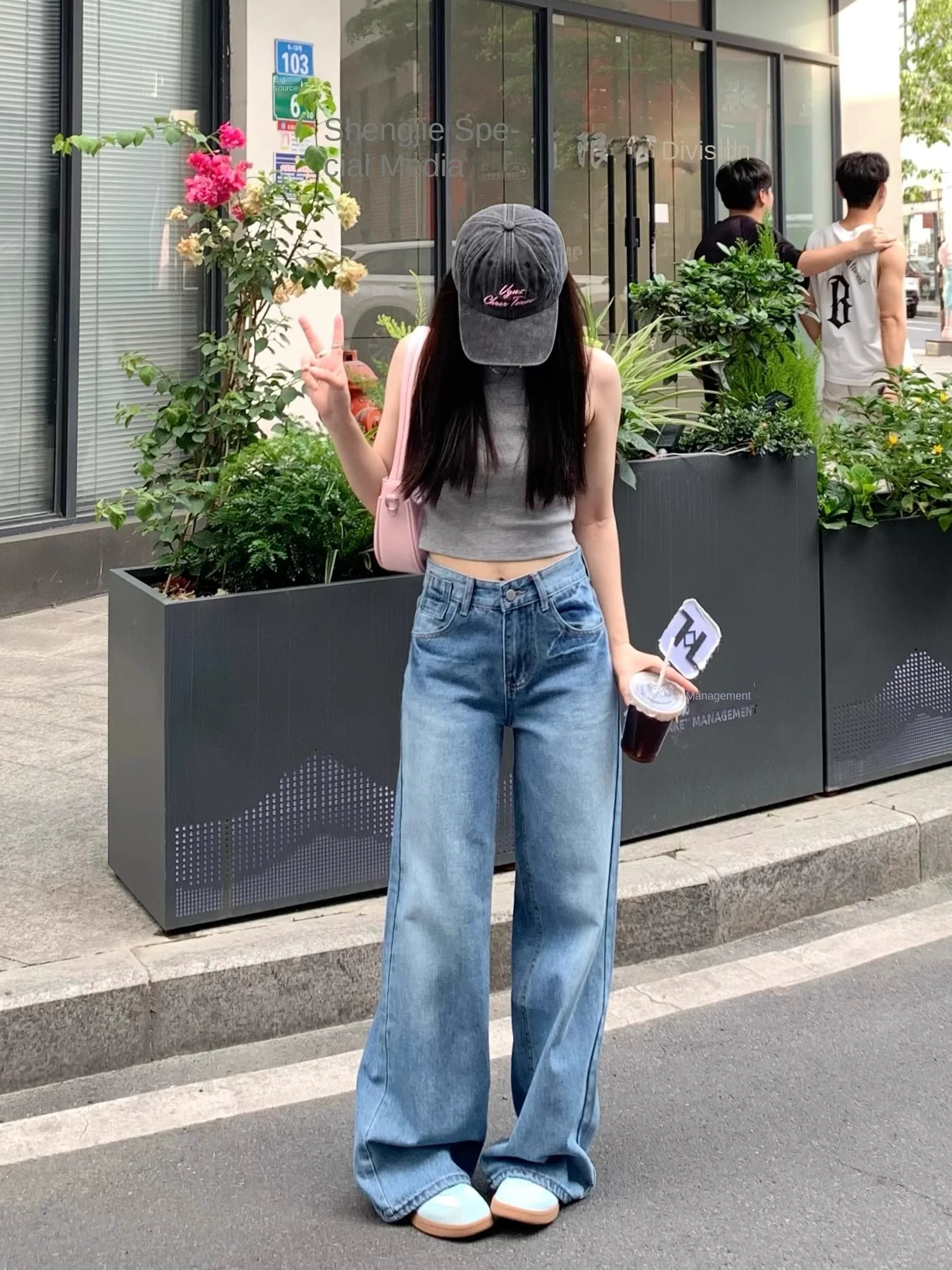 Korean reviews y2k jeans low waist baggy jeans for women 2025 spring summer retro loose blue washed wide leg pants