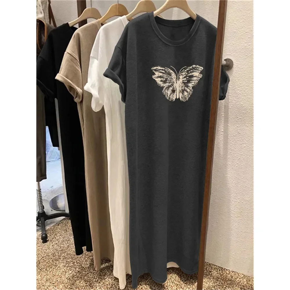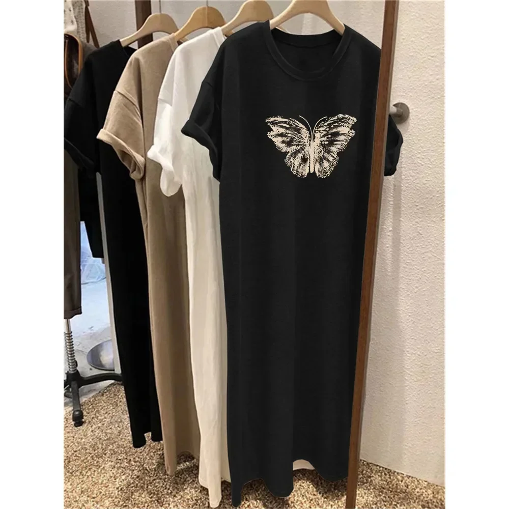 Korean Summer National Butterfly Print Extra Large Loose Loose Large Size Summer Short Sleeve Dress Women
