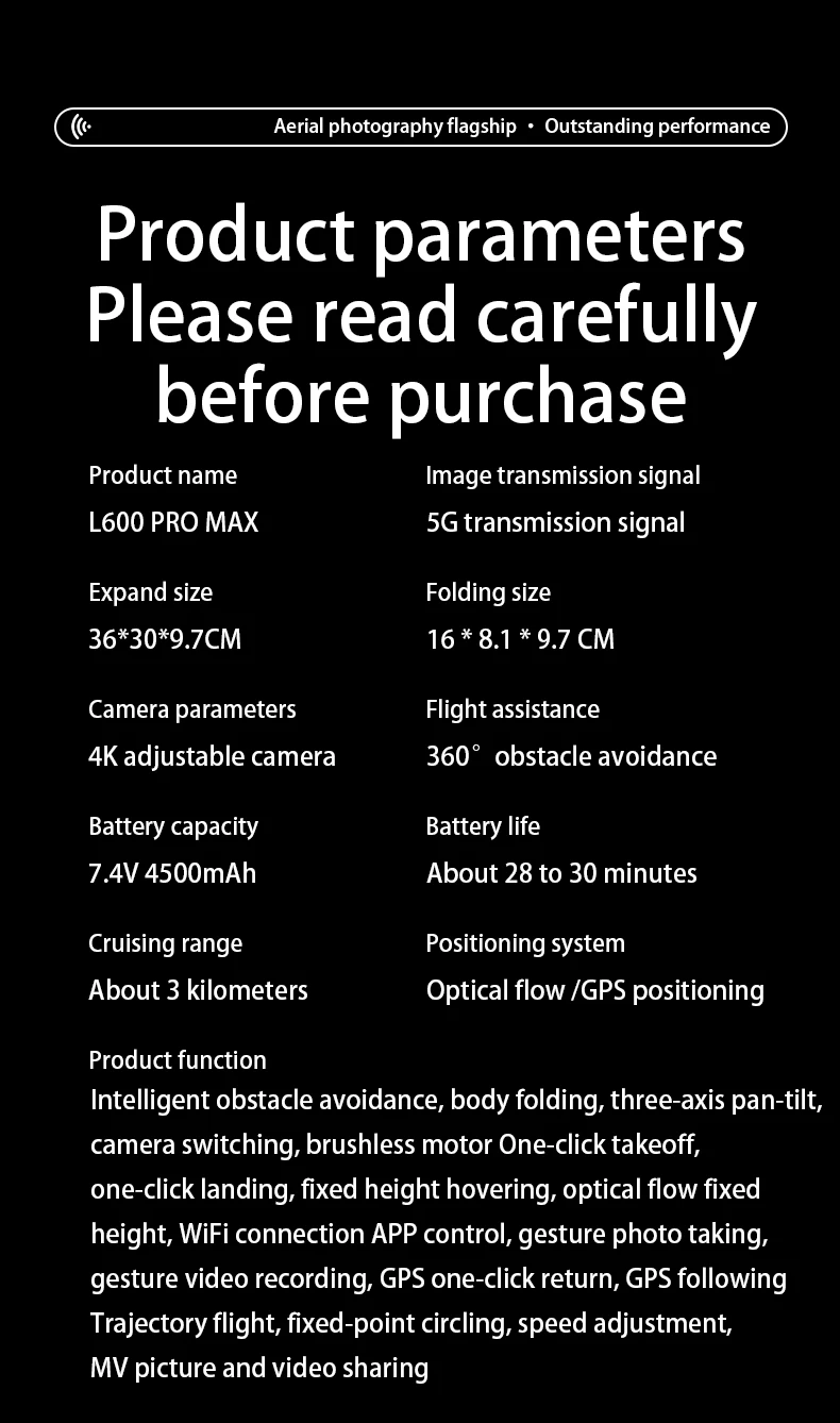 Package Version 1: L600-1 PRO MAX (OAS) 4K 1B (with obstacle avoidance)