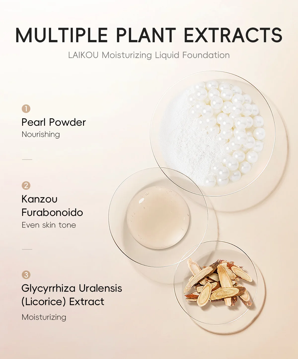 LAIKOU Liquid Foundation Multiple Shades Hydrating Natural Finish Creamy Full Coverage Makeup Base Long Lasting Wear 30ml