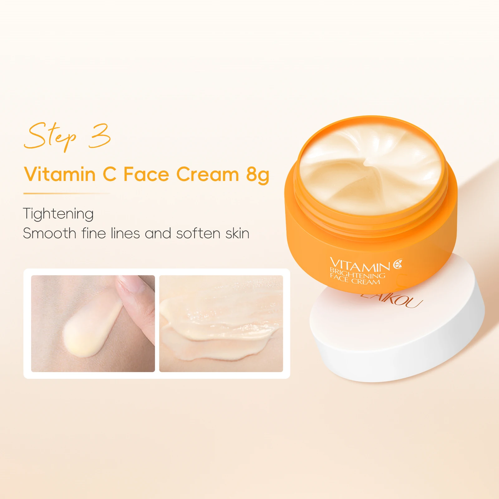 LAIKOU Vitamin C Travel Set 4PCS Mini Moisturizing Brightening Kit Even Skin Tone Smooth Lines Sunscreen TSA Approved