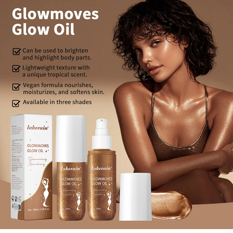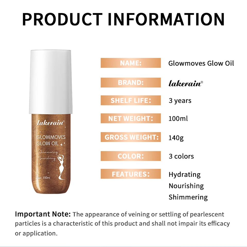Lakerain 100ml Glowmoves Glow Oil Long Lasting Smoothing Nourishing Deep Moisturizing Shimmering Non-greasy Body Care Glow Oil