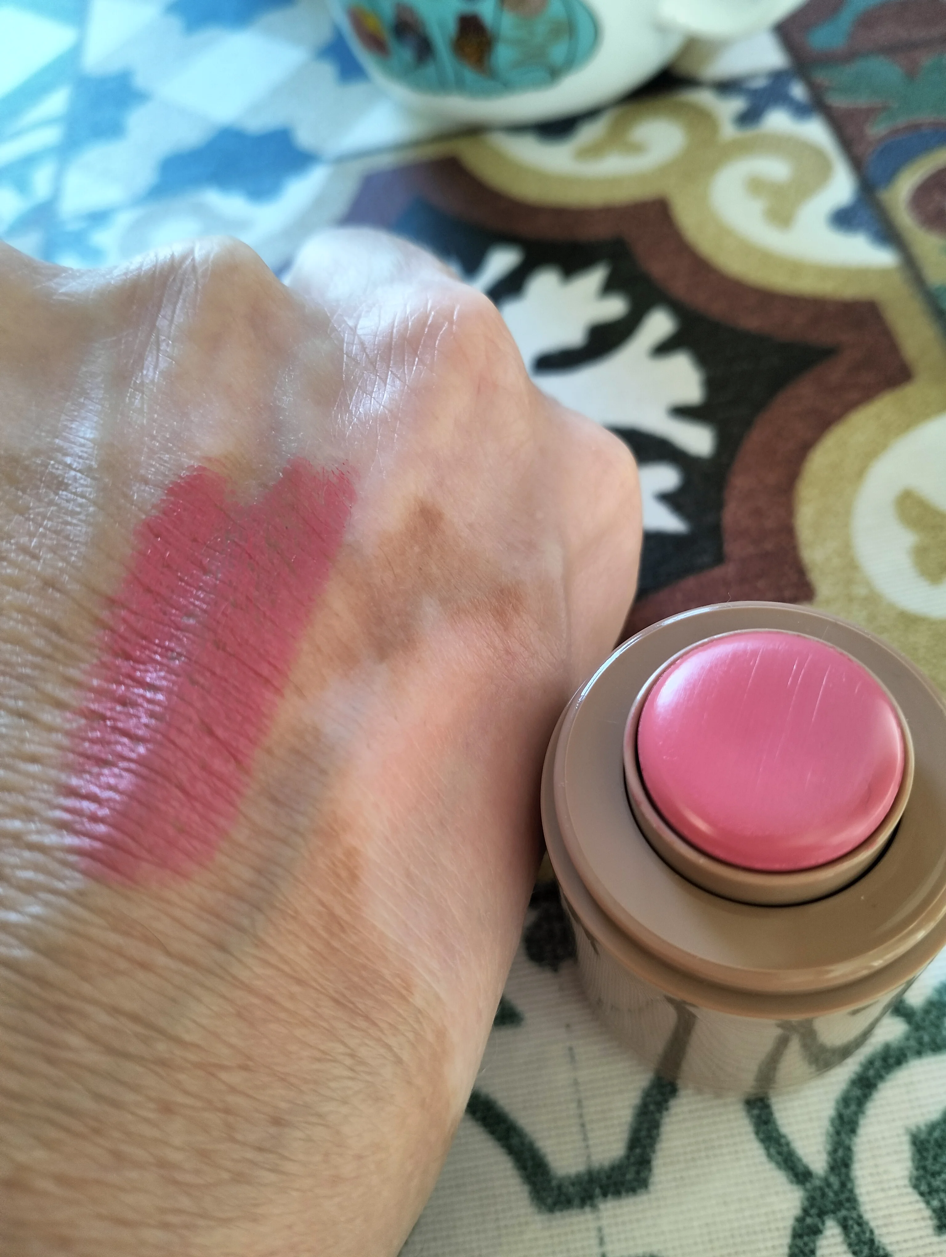 Really nice natural flush of colour. It’s cool toned so it doesn’t come off as orange like a bronzer. Brown girl friendly ✌🏽 I think you can use as a lip colour. Doesn’t need a lot to apply to get colour. Just a couple of dabs and then a couple of brushes on the face. Good product only thing is it’s hard to kinda notice which end you pull off. Just put a sticker on the lid really.