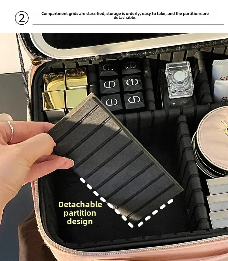 • LED Mirror : Equipped with an LED mirror, this cosmetic case allows you to check your appearance anytime, anywhere.