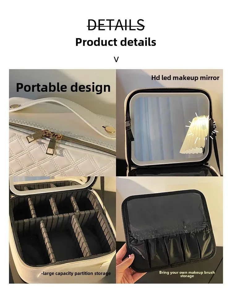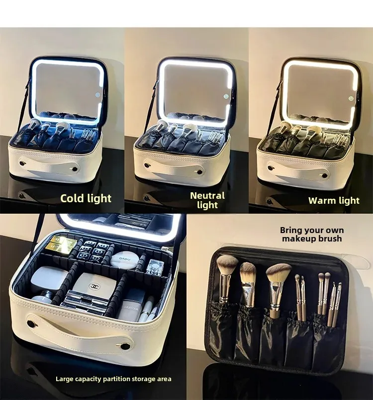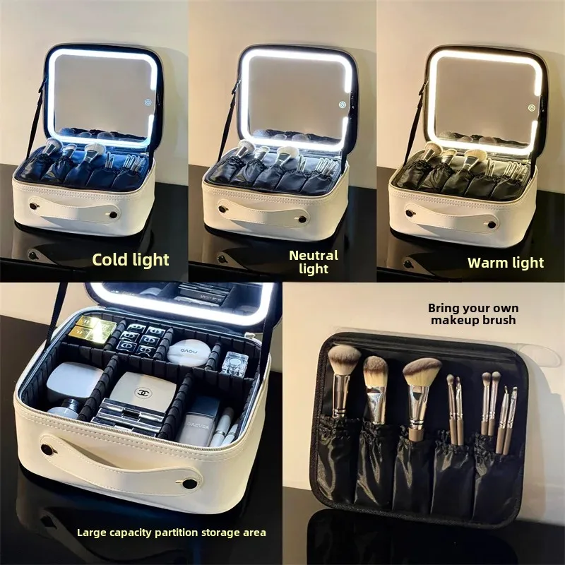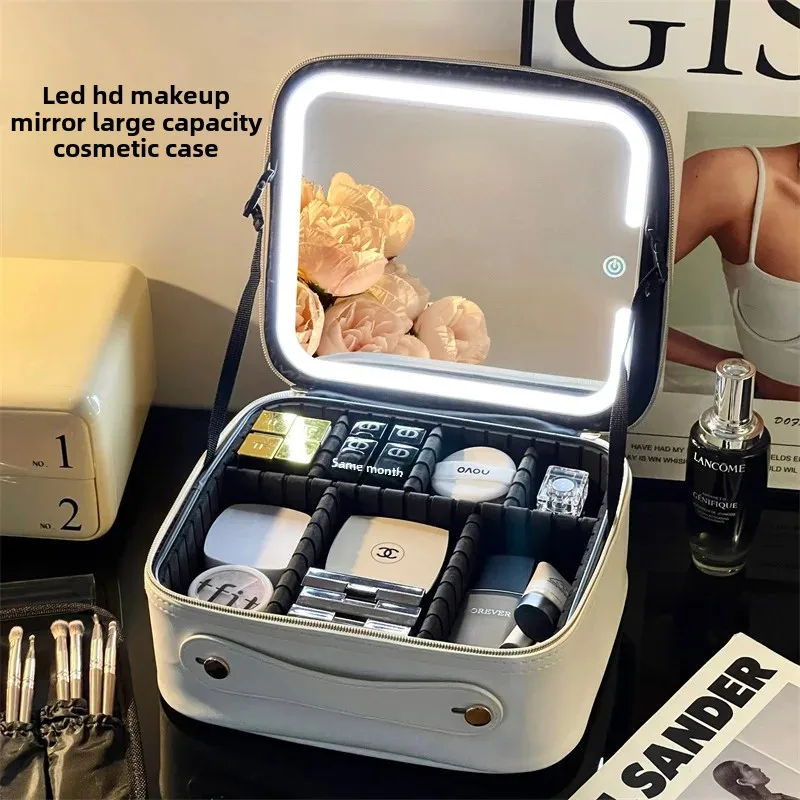 Large Capacity Portable Makeup Bag with Light Travel Cosmetic Storage Box LED Mirror Cosmetic Bag Storage Case
