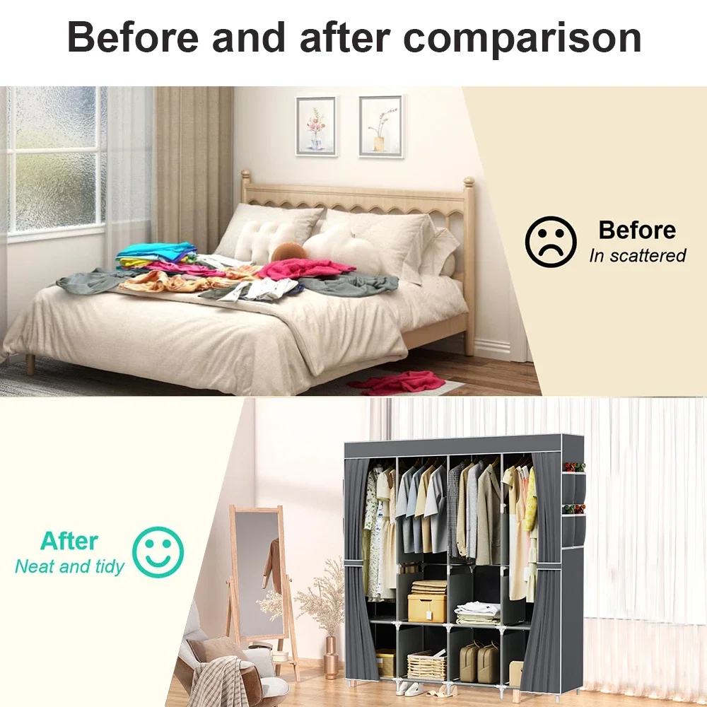 【Portable and Versatile】Take your fabric wardrobe for bedroom wherever you go! The lightweight and foldable design allows for easy transportation and setup in any room. Whether it’s your bedroom, office, or even outdoor adventures like camping, the foldable closets provides convenient and versatile open storage options. Enjoy the freedom to organize your belongings wherever you need it!