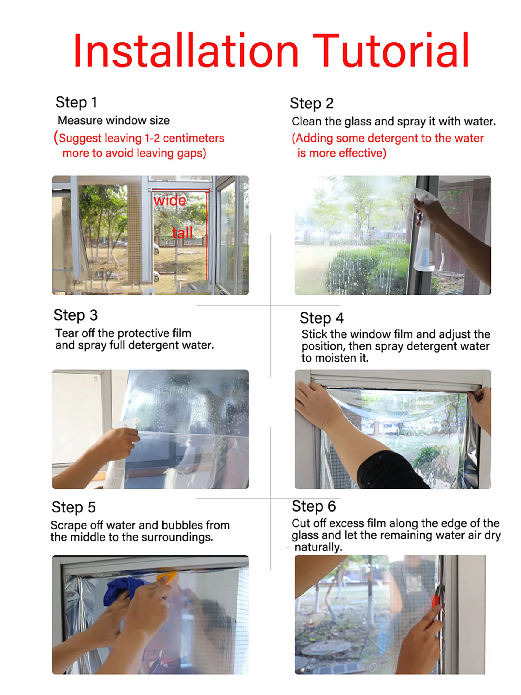 5. No glue: The privacy window film is non adhesive, easy to install and remove, and has no residue.
