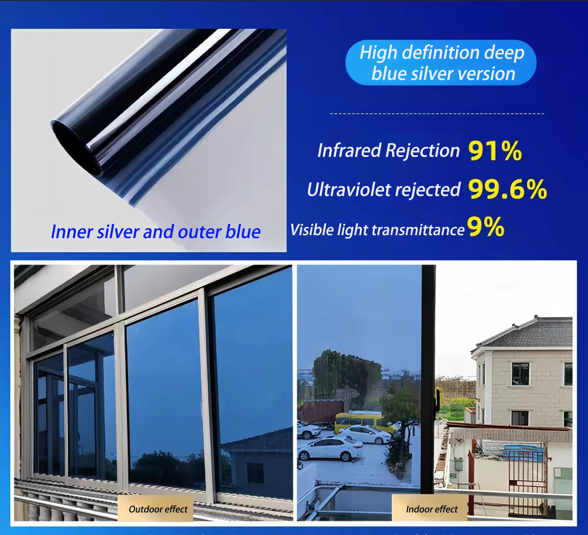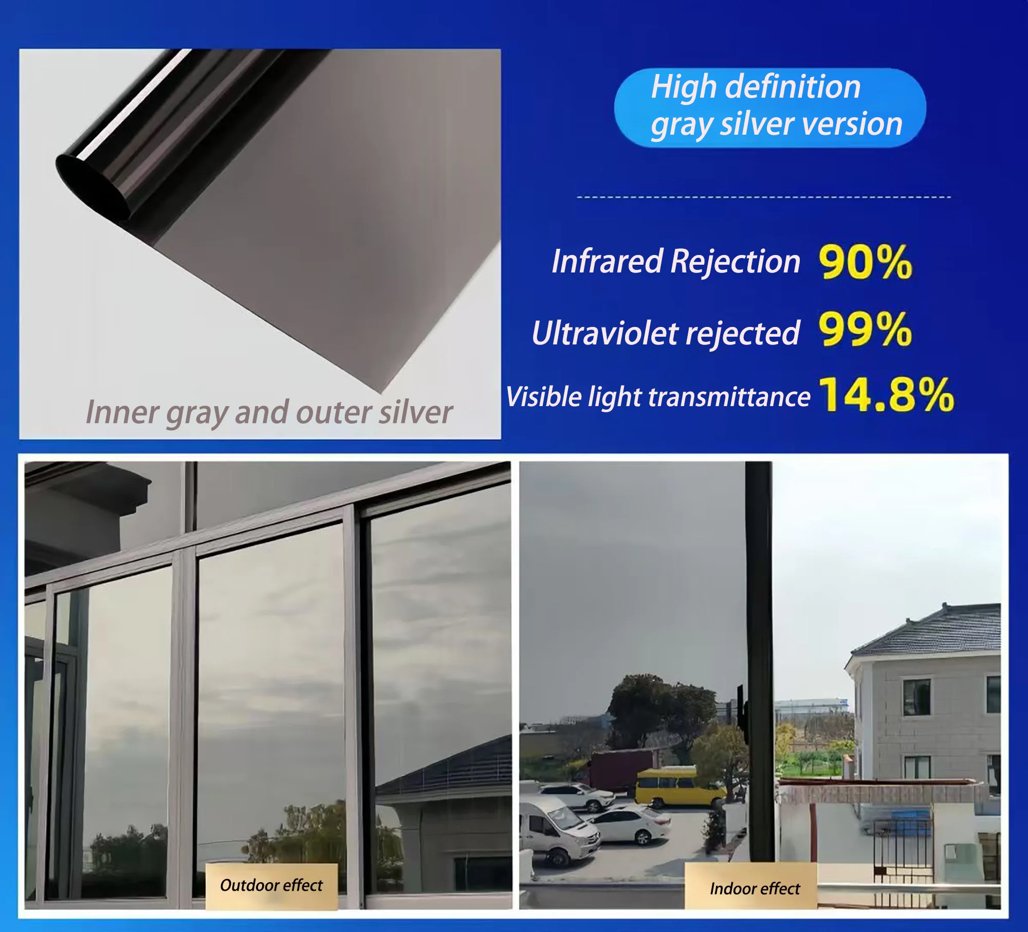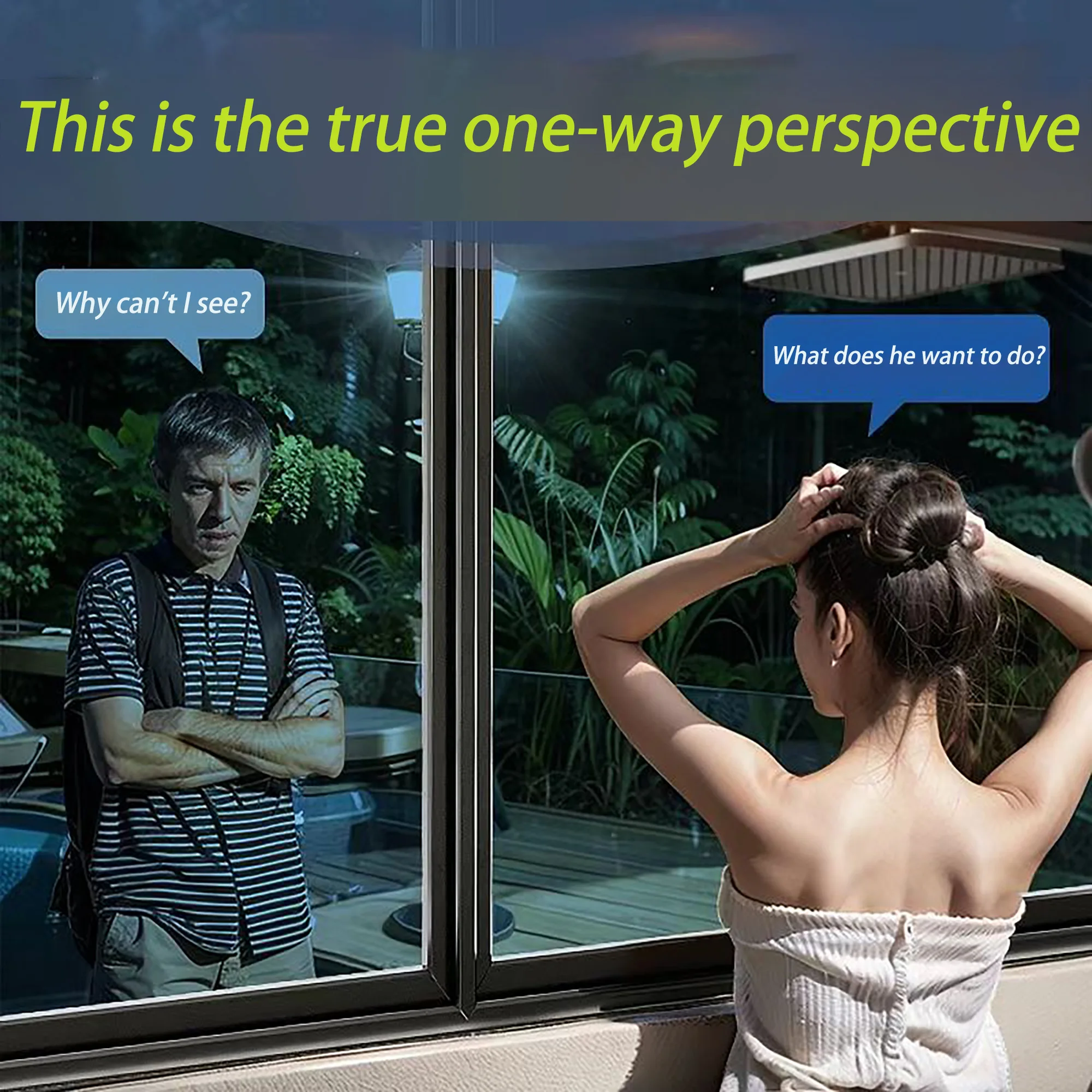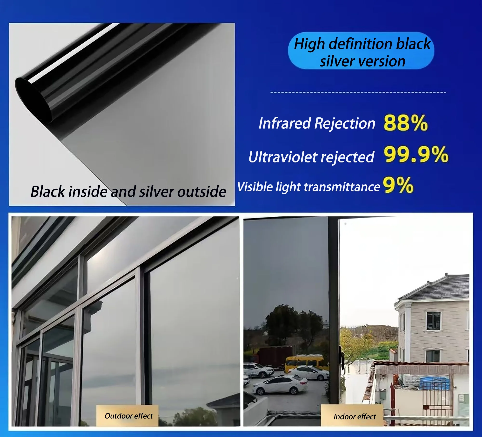 This is a one-way privacy window film that provides sun protection, UV protection, infrared protection, peeping prevention, insulation, and shading. It is suitable for various windows and creates a comfortable and private environment for you.