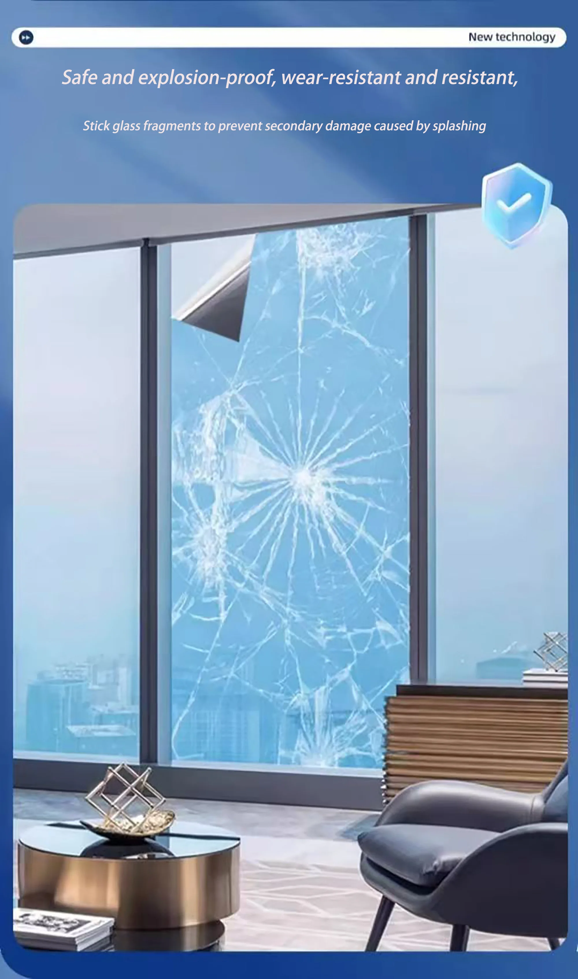 4. Safety protection: When your glass accidentally breaks, this type of window film can prevent fragments from splashing and protect you and your family.