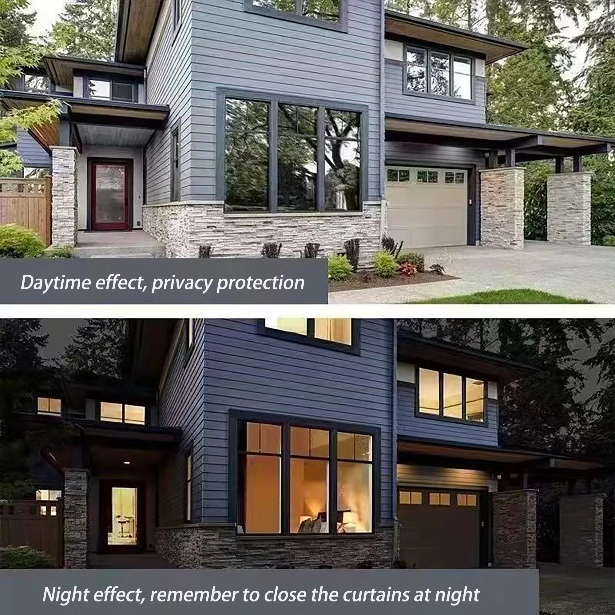 3. Privacy protection: Self adhesive window film creates a private space for you, blocking external vision, but you can still see from inside out and understand the situation outside. (Attention; curtains need to be drawn at night)