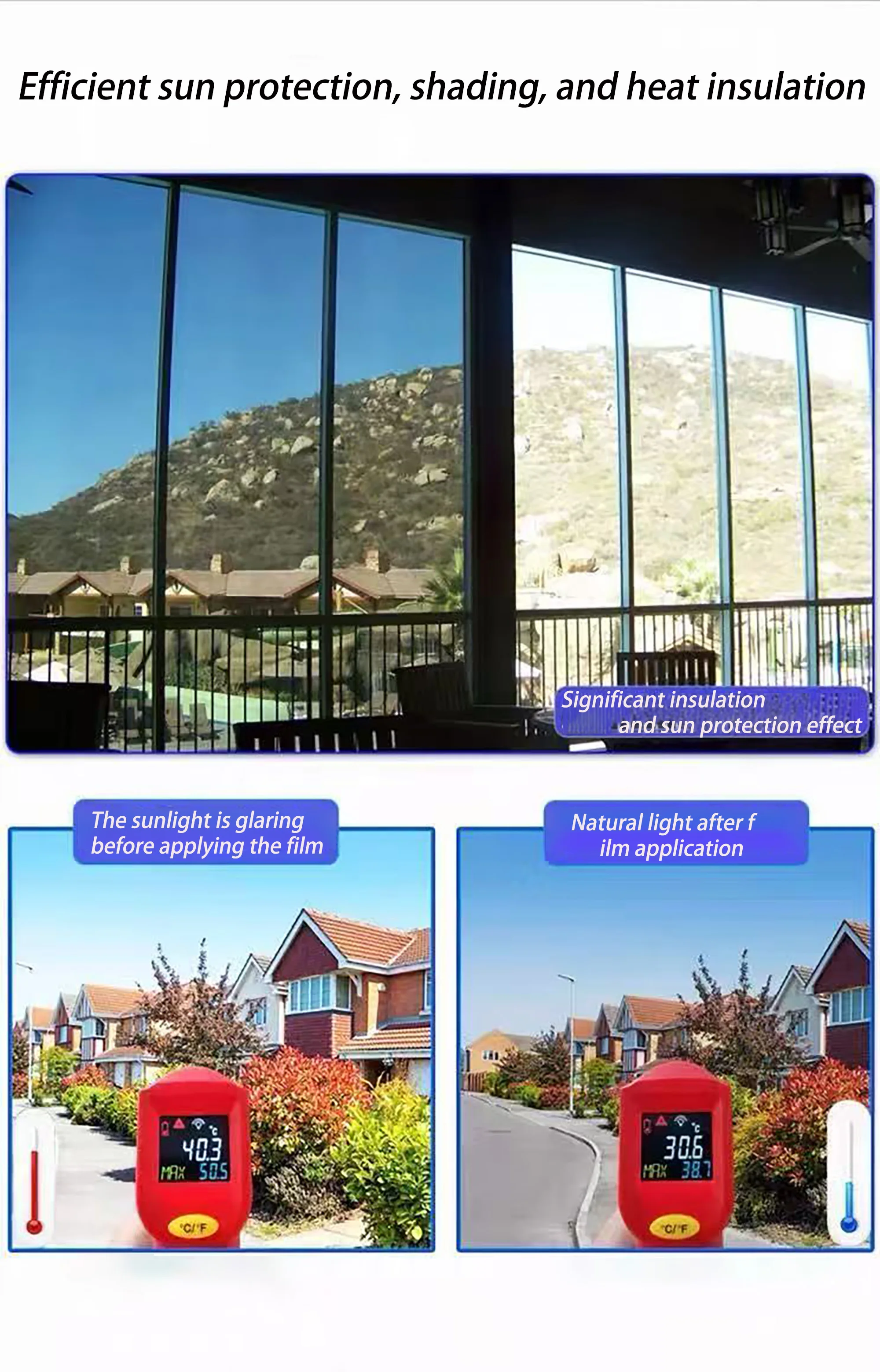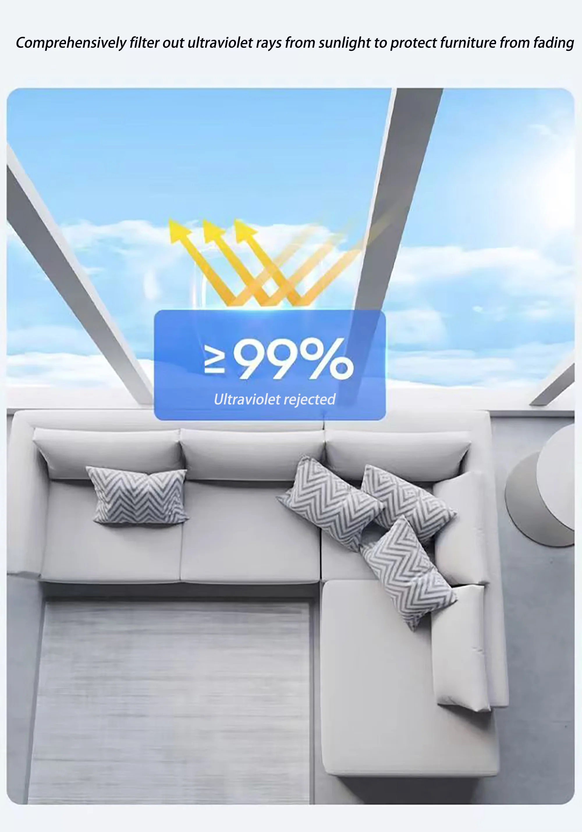 1. Block UV rays: Glass film can block most harmful UV rays, protect your skin from damage, and reduce furniture fading and aging