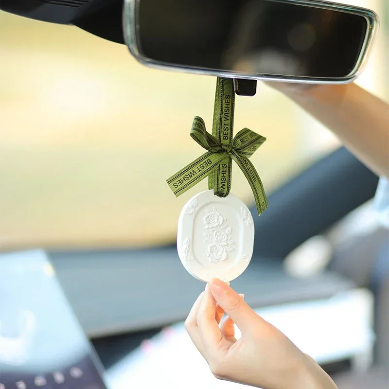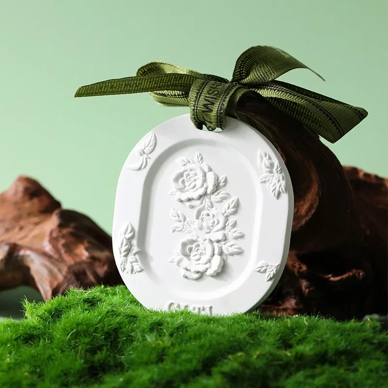 Lasting Aroma Aromatherapy Light Luxury Ancient Home Perfume Diffuser Gypsum Embossed Flower Fragrance Tablet Car Fragrance Pendant