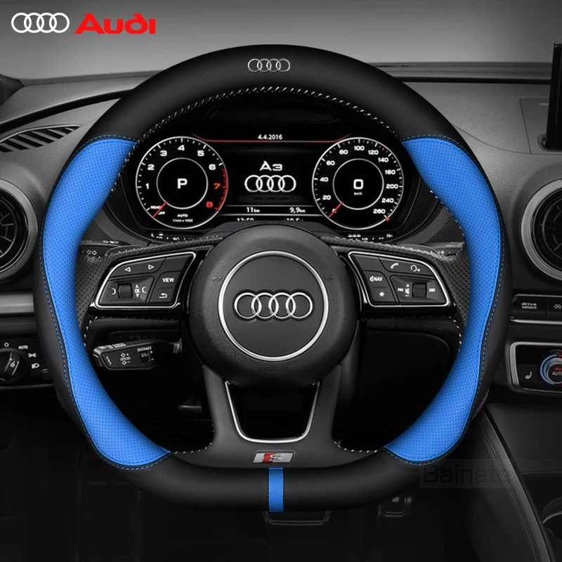 Leather carbon fiber style For Audi A1 A3 8P A4 A5 A6 C7 A7 S3 S7 S8 R8 Q2 Q3 Q5 Q7 Q8 SQ5 TT RS3 RS6 Car Steering Wheel Cover
