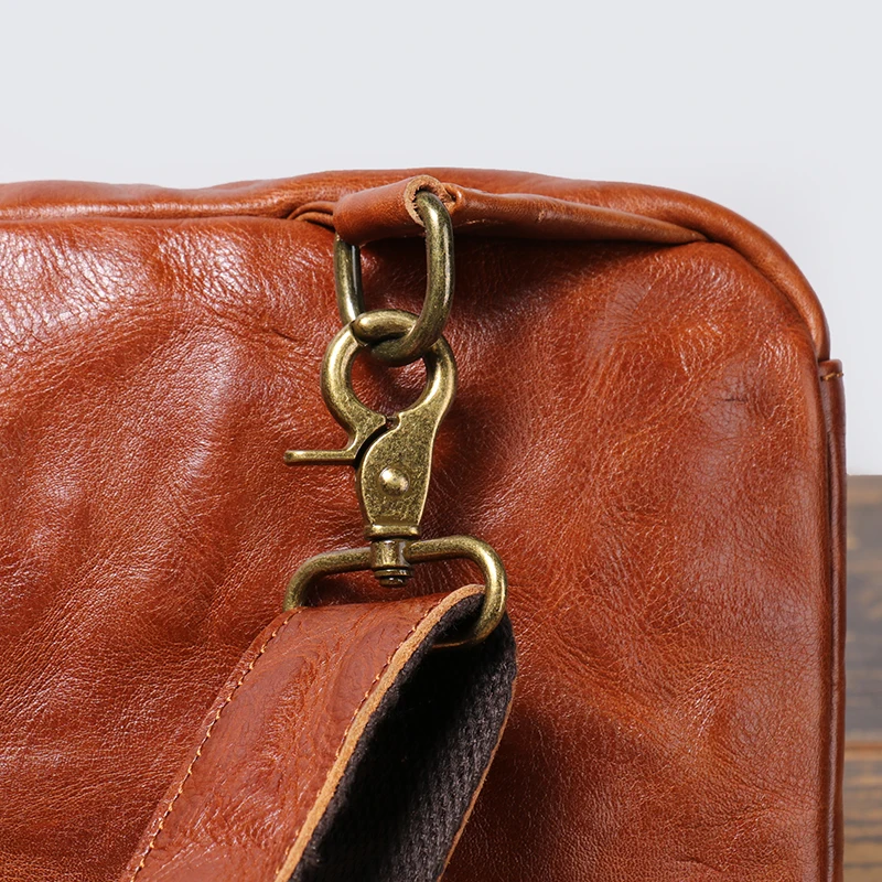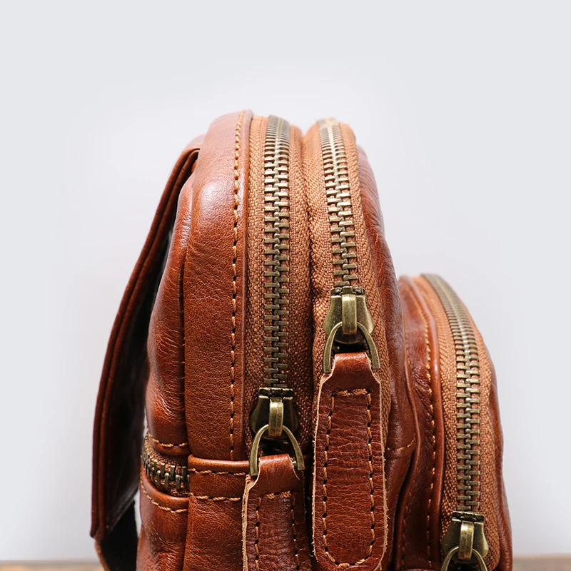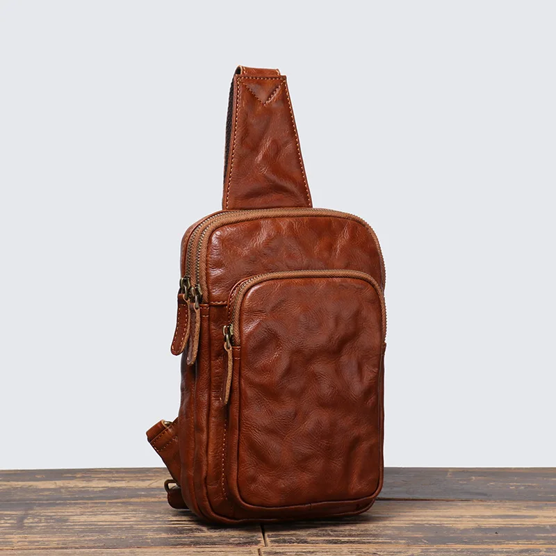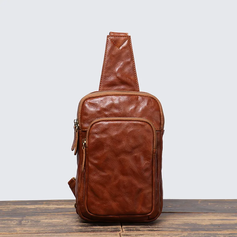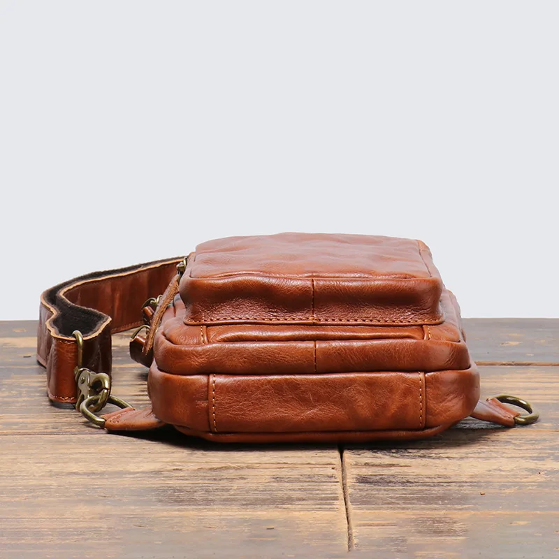 Leathfocus Men’s Frist Layer Cowhide Chest Bag Vintage Leather Shoulder Messenger Bag Handmade Trendy Man Bag For 9.7 Inch Ipad