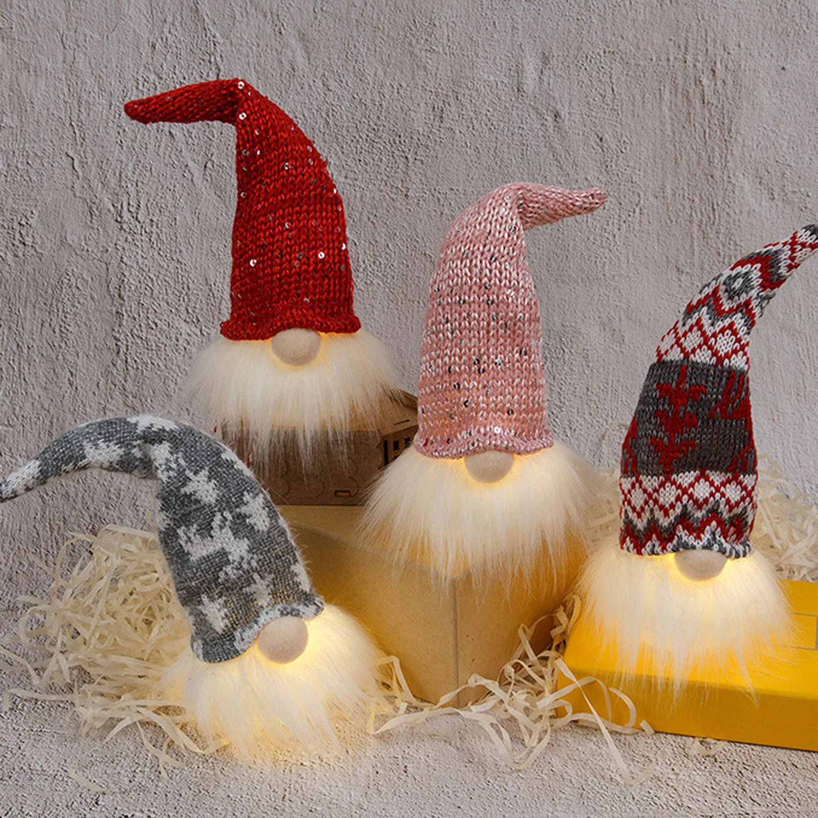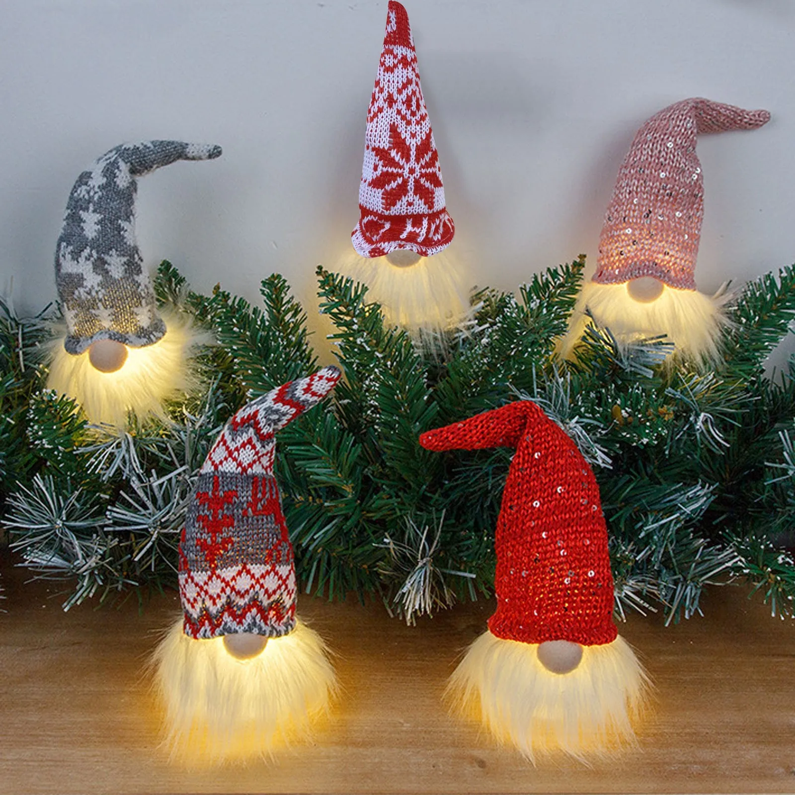 LED Christmas Gnome Plush Santa Claus Doll Decoration Faceless Gonk Dwarf Ornament Merry Christmas Toy Xmas Navidad Noel Gifts