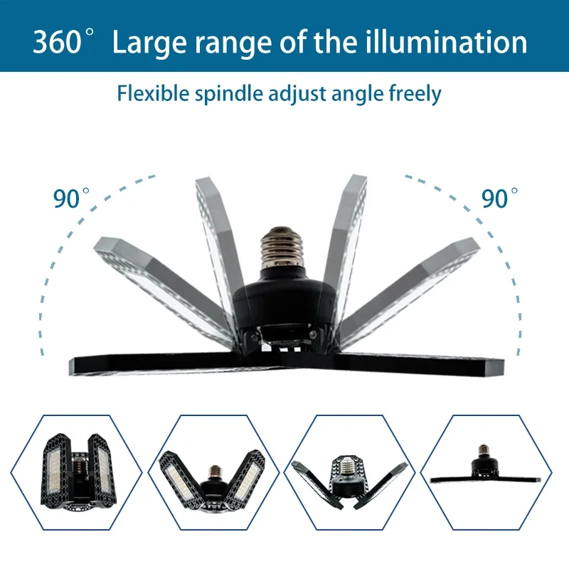 LED Garage Lamp AC 110V 220V 40W 60W 80W Deformable Light E27 Cold/Warm White Adjustable Angle Led Light Bulb for Workshop