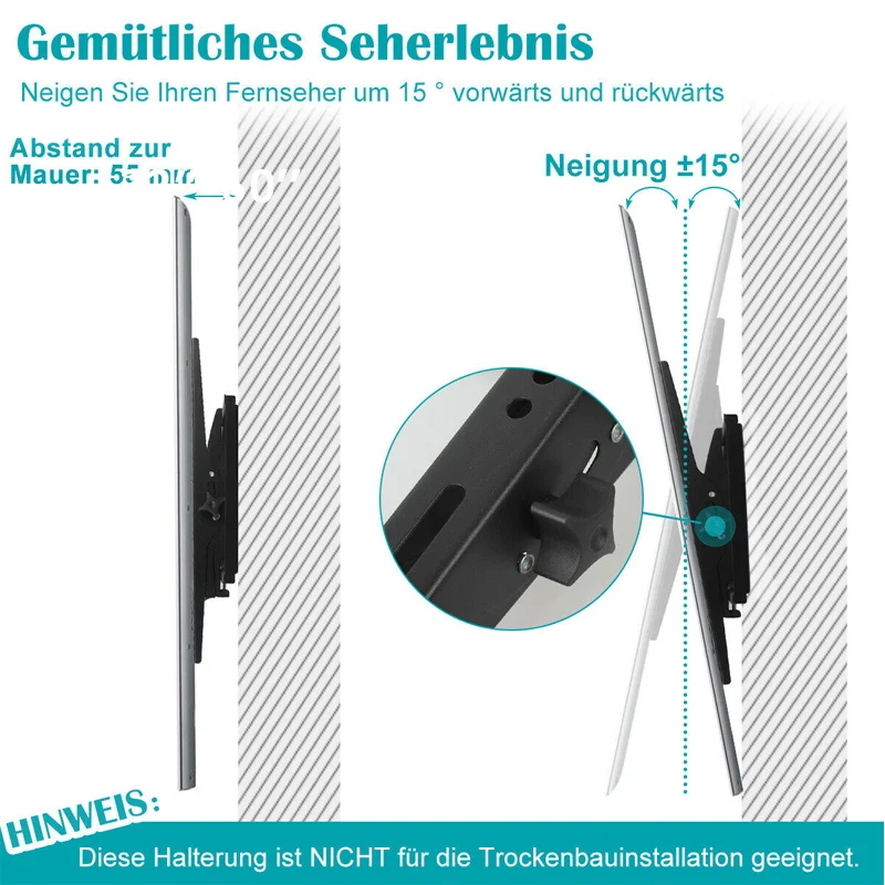 Fixed wall mounting bracket (TV hanging bracket front and back tilt angle 15°)