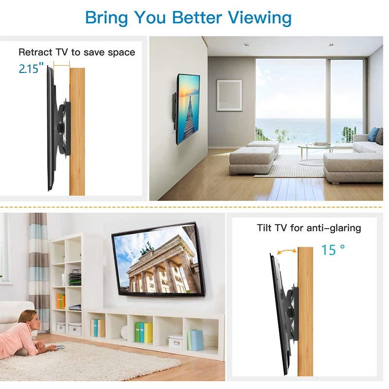 LED LCD TV Wall Mount Bracket Tilt Adjustable Strengthen TV Support 32-65inch Full Motion Wall Mount TVs Swivel Tilt Horizontal